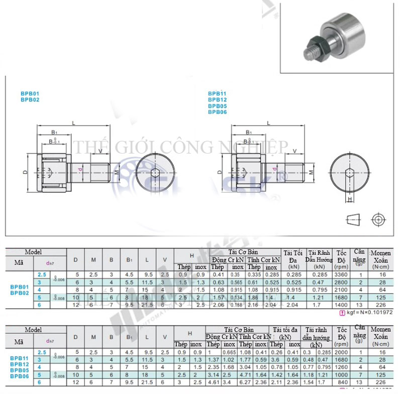 Bạc đạn cam dẫn hướng dòng BPB là dòng bạc đạn (vòng bi) chuyên dụng, dùng để dẫn hướng và truyền lực trong các hệ thống chuyển động tuyến tính hoặc quay, thường thấy trong máy móc tự động hóa, robot, máy ép nhựa, máy CNC... Sản phẩm được chế tạo với nhiều kích cỡ từ BPB 2.5 đến 6 để đáp ứng các yêu cầu tải trọng và không gian lắp đặt khác nhau.