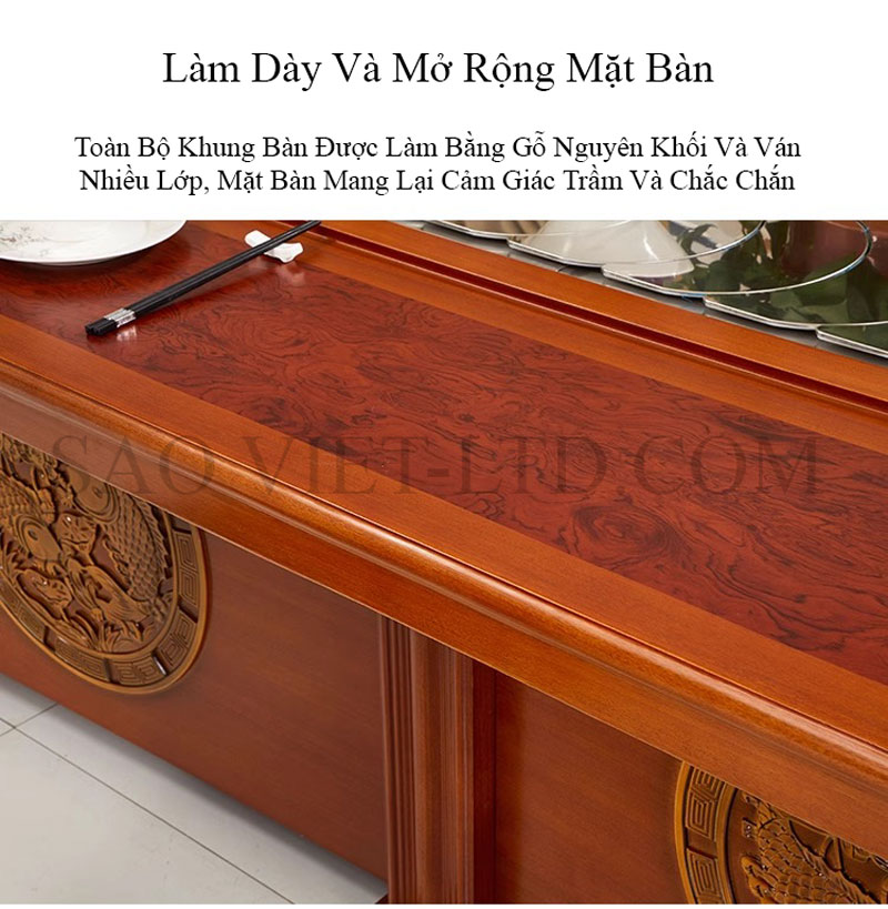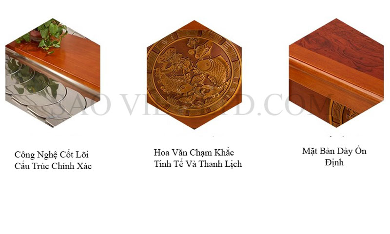 - Gỗ tự nhiên cao cấp: Khung và chân bàn làm từ gỗ tự nhiên hoặc gỗ công nghiệp chất lượng cao, được xử lý chống cong vênh và mối mọt. Phần gỗ này không chỉ tăng cường độ vững chắc mà còn tôn lên sự sang trọng với vân gỗ tự nhiên đẹp mắt.