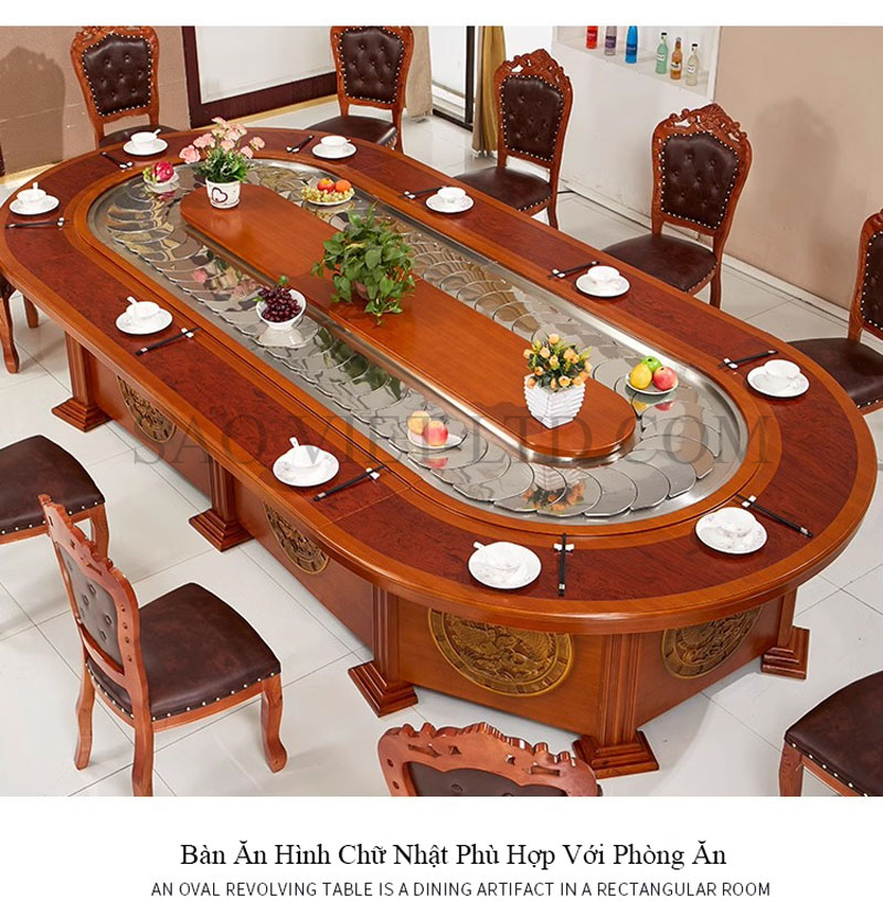 Bộ bàn ăn điện mẫu BA02 là một thiết kế đẳng cấp, kết hợp kiểu dáng hình bầu dục sang trọng và băng tải xoay tự động hình chữ nhật độc đáo. Đây là lựa chọn lý tưởng cho những không gian lớn như phòng tiệc khách sạn, nhà hàng cao cấp, hoặc các phòng ăn gia đình muốn mang đến trải nghiệm hiện đại và tiện nghi. Sự kết hợp giữa tính năng băng tải xoay và thiết kế bầu dục mềm mại giúp bàn ăn BA02 trở thành điểm nhấn cuốn hút cho bất kỳ không gian nào.