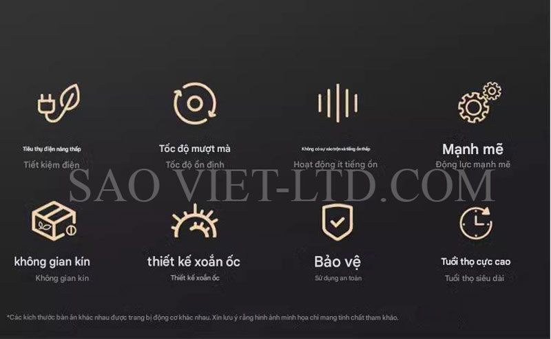 Băng tải xoay tự động: Bàn được trang bị hệ thống băng tải tự động có thể xoay tròn, giúp mọi người dễ dàng tiếp cận món ăn mà không phải đứng dậy. Tốc độ xoay thường có thể điều chỉnh linh hoạt.
