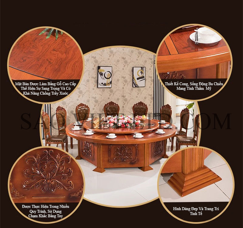 Mẫu bàn ăn BA03 với mâm xoay điện tự động không chỉ là một sản phẩm tiện ích mà còn là một điểm nhấn sang trọng, đẳng cấp cho không gian nhà hàng và khách sạn cao cấp.