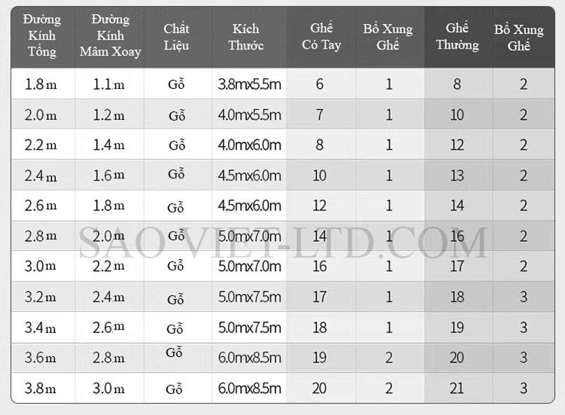 - BA04 có các tùy chọn kích thước phù hợp cho bàn từ 8 đến 14 người, đảm bảo không gian thoải mái và ấm cúng cho thực khách.