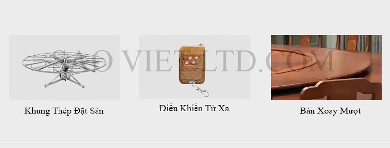 - Mặt bàn có mâm xoay tròn gắn động cơ điện tự động giúp người dùng dễ dàng xoay bàn chỉ bằng thao tác bấm nút hoặc điều khiển từ xa.