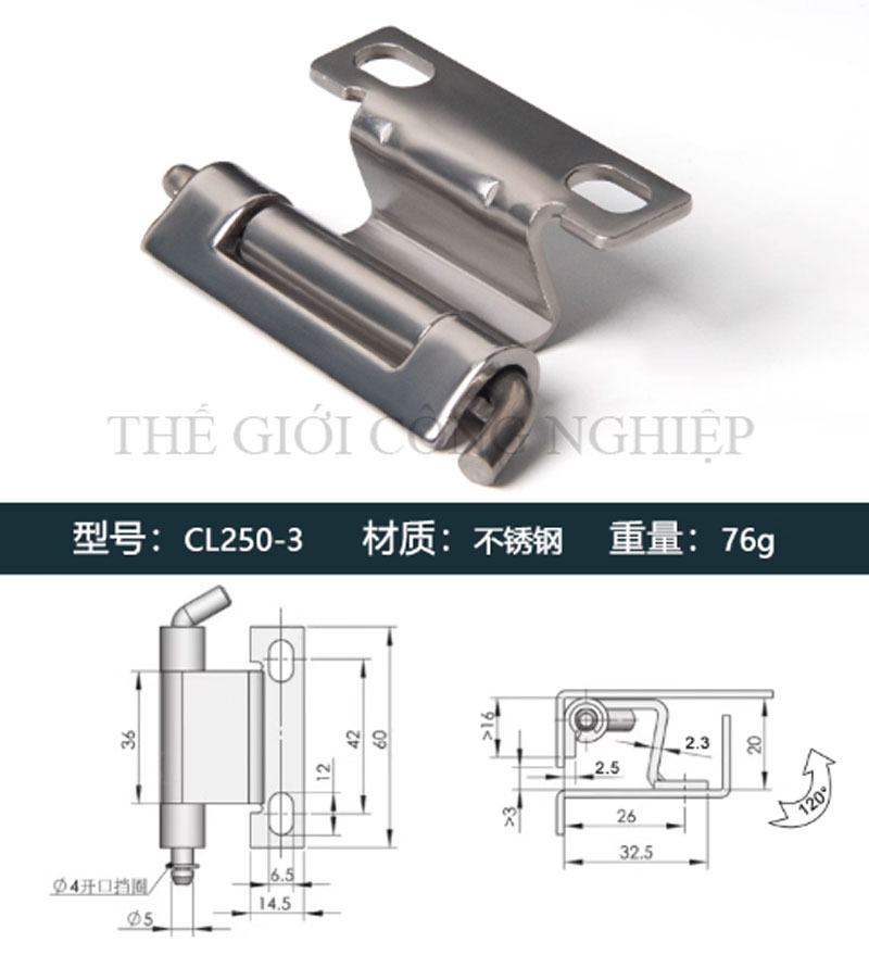 2. Bản lề CL230/CL211 – Bản lề inox tủ điện, bản lề tháo rời chốt cài cho tủ điện