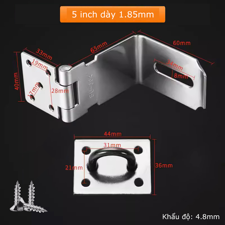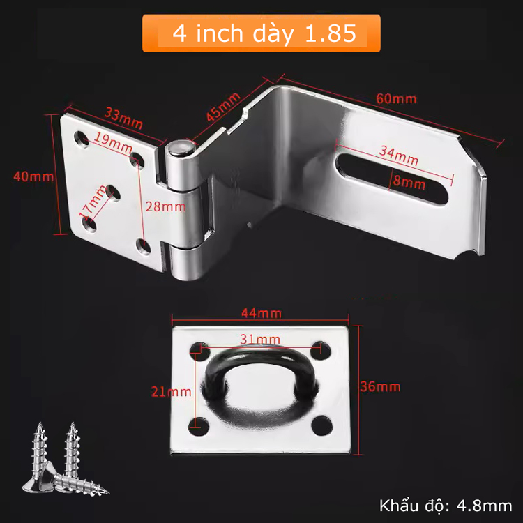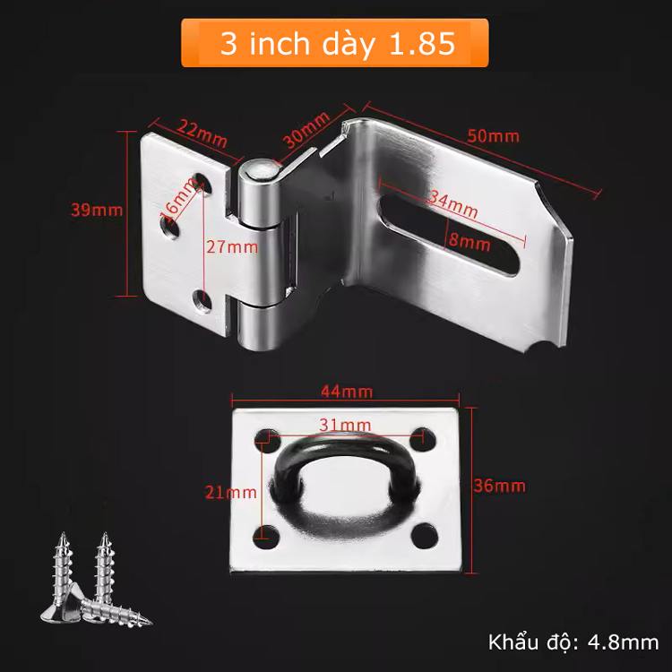 - Thiết kế: Khóa góc 90 độ, giúp cố định cánh cửa hoặc nắp tại góc 90 độ. Phần bản lề có các lỗ để bắt vít, giúp dễ dàng lắp đặt.