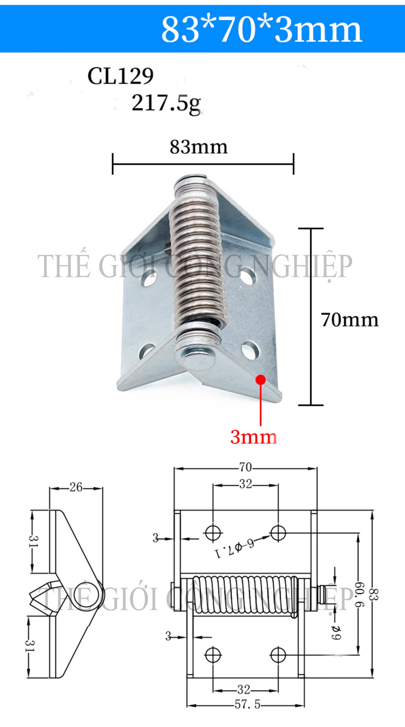 Bản lề lò xo CL129 là dòng phụ kiện cơ khí cao cấp được thiết kế chuyên dụng cho cửa tự đóng – tự hồi, phù hợp với các ứng dụng yêu cầu đóng kín cửa tự động như cửa phòng sạch, cửa thép công nghiệp, tủ điện, vách ngăn kỹ thuật, v.v.