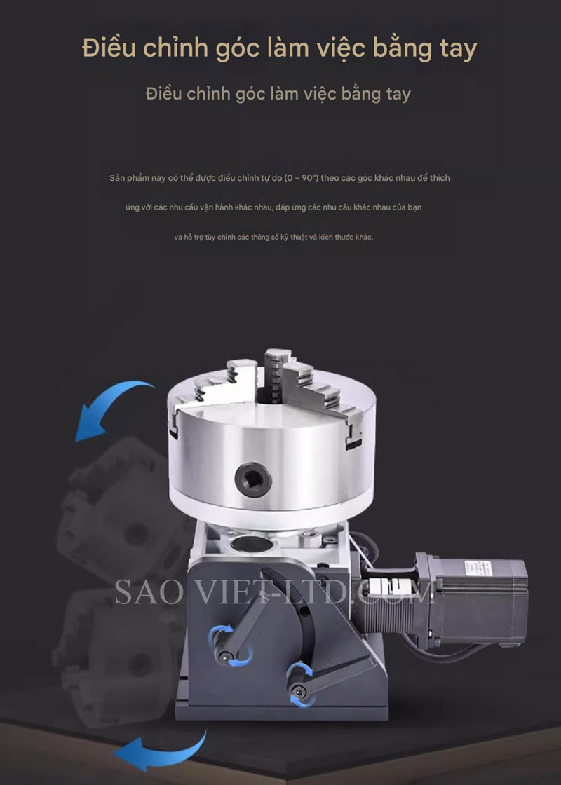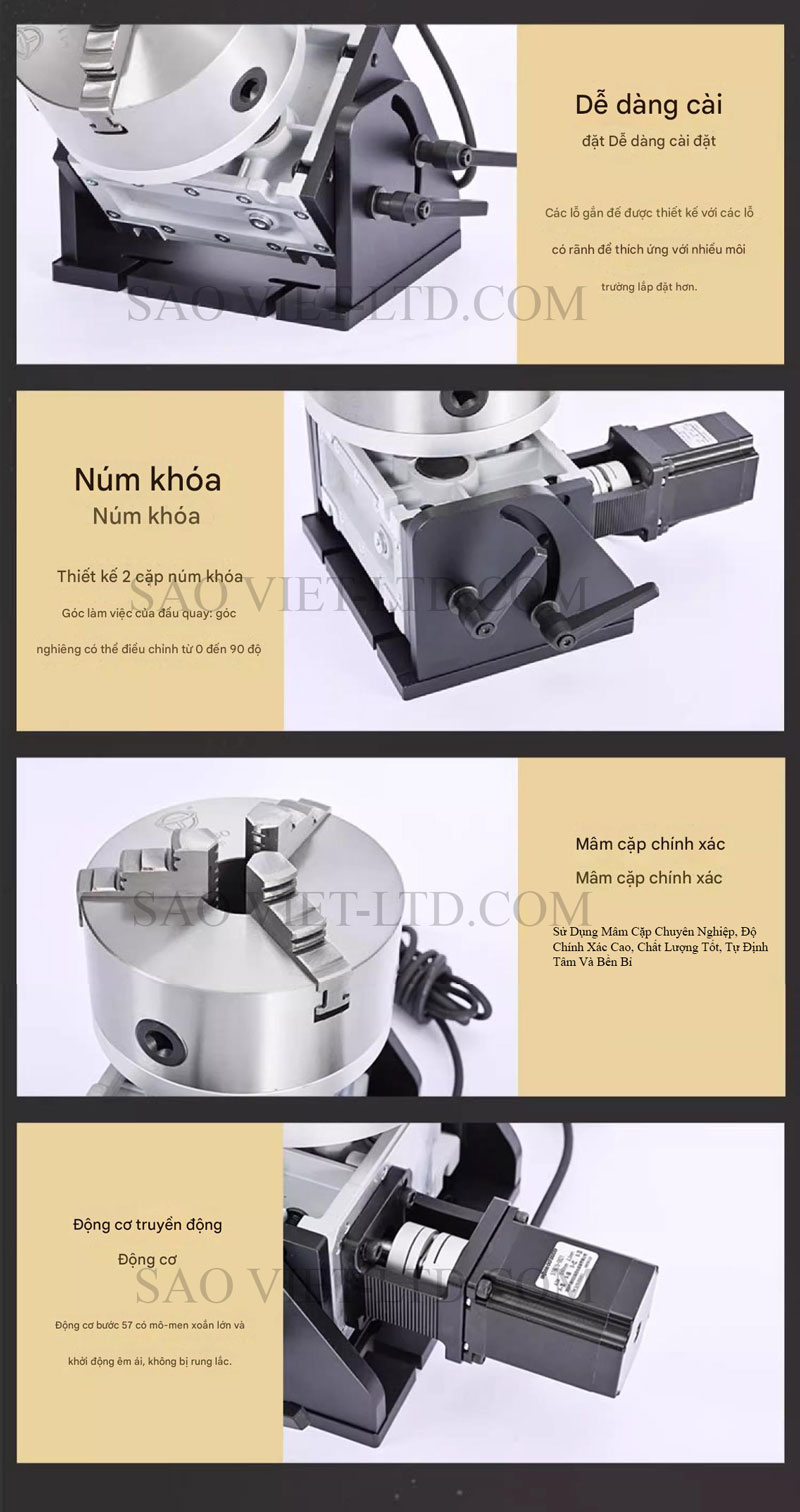 - Khả năng xoay: Xoay được 360 độ, hỗ trợ các mối hàn theo đường tròn, cung tròn, hoặc chuyển động đều quanh trục.