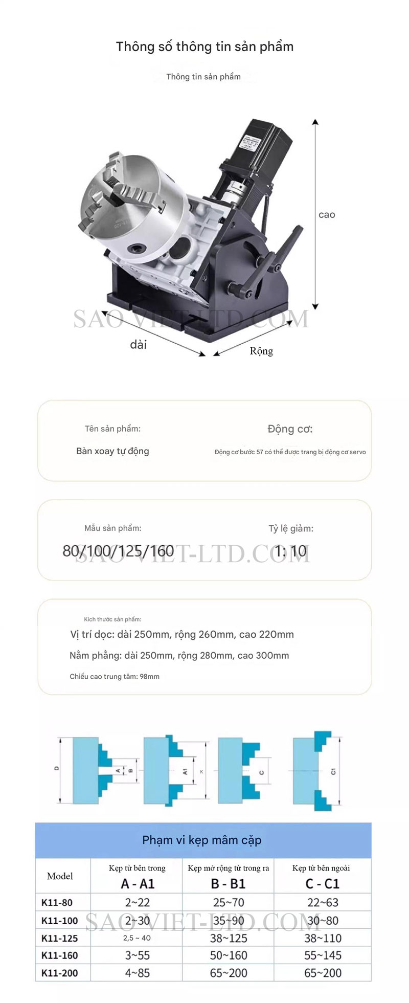 - Loại mâm cặp: Thường là mâm cặp 3 chấu hoặc 4 chấu, hỗ trợ cả kẹp trong và kẹp ngoài.