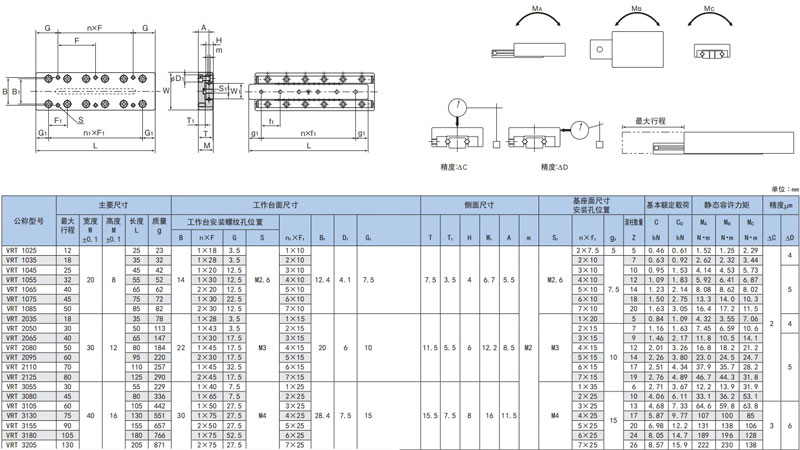 Bảng Thông Số Kỹ Thuật Bàn Trượt Dẫn Hướng Con Lăn Chéo Loại Nhỏ VRT