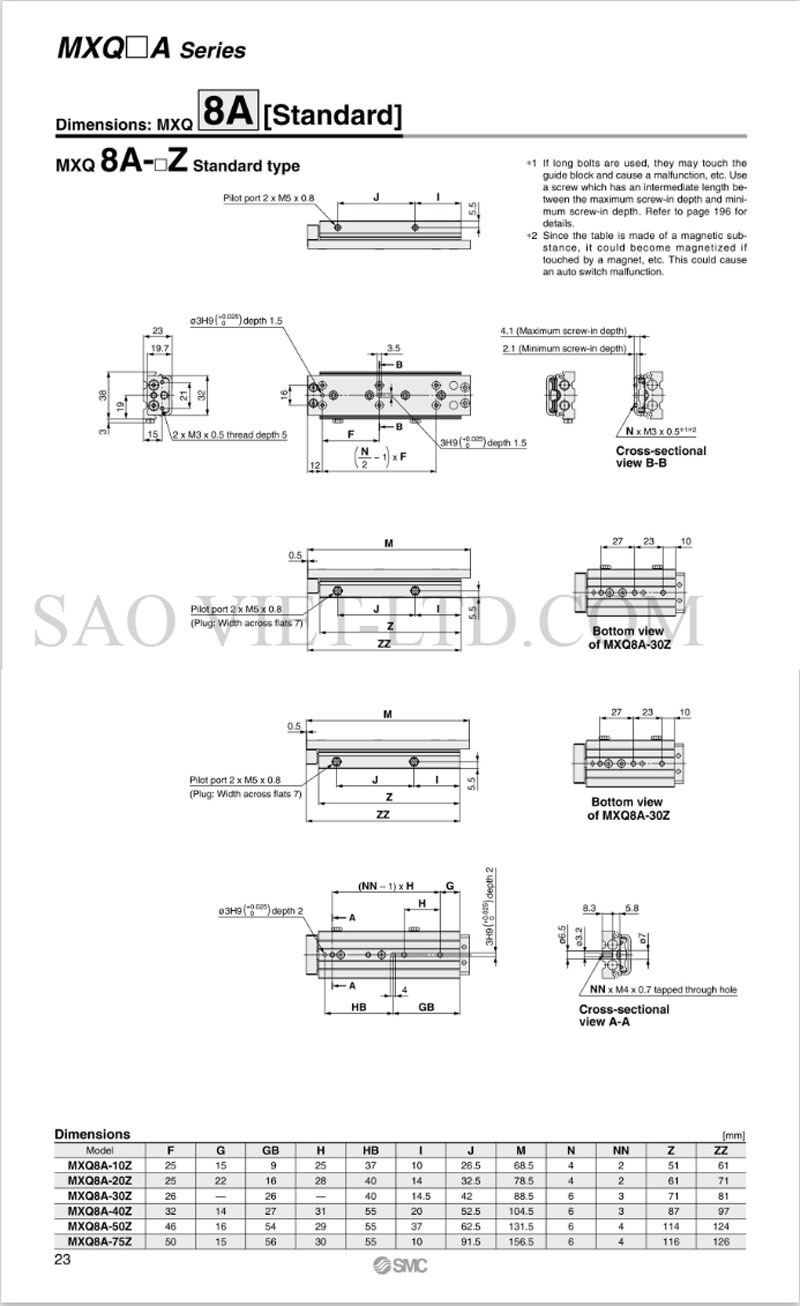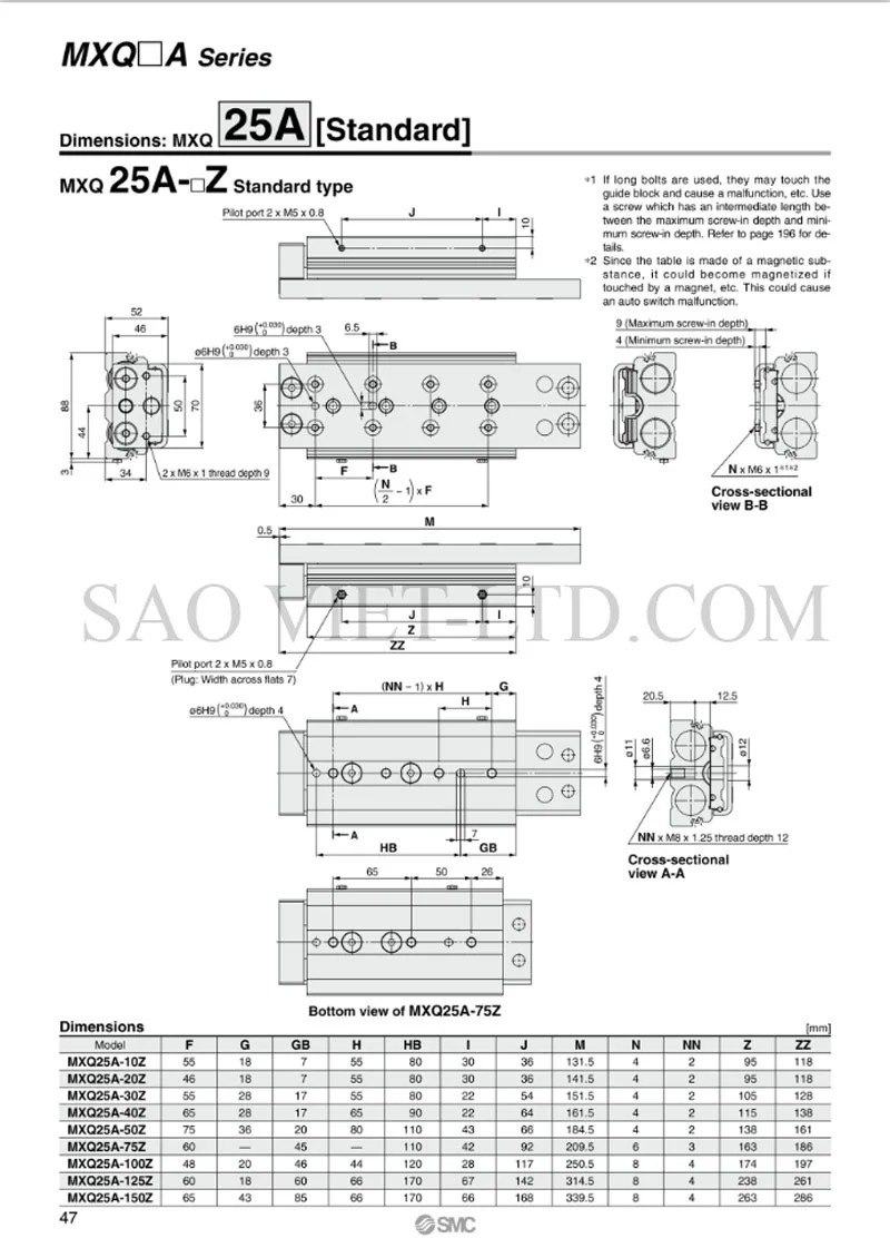 Sản phẩm có nhiều tùy chọn hành trình: 10mm, 20mm, 30mm, 40mm, 50mm, 75mm, 100mm, đáp ứng đa dạng nhu cầu sử dụng trong sản xuất. Hệ thống dẫn hướng song song tích hợp sẵn giúp hạn chế rung lắc, tăng độ chính xác khi di chuyển, đồng thời giảm thiểu tiếng ồn trong quá trình hoạt động. Nhờ đó, MXQ6A/8A đảm bảo chuyển động tuyến tính mượt mà, ổn định và tuổi thọ lâu dài.