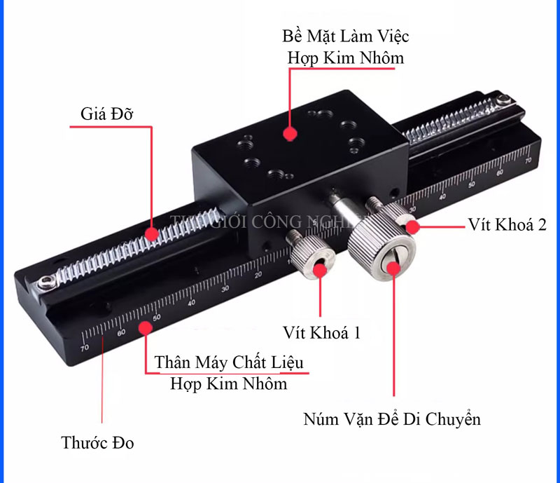 Cơ cấu truyền động: sử dụng bộ truyền bánh răng – thanh răng (gear & rack), cho phép điều chỉnh mượt mà, phản hồi tốt và độ chính xác cao trong từng lần vi chỉnh.