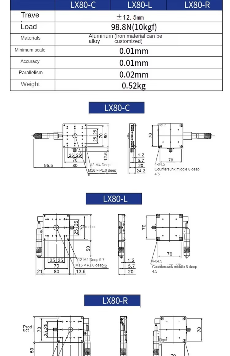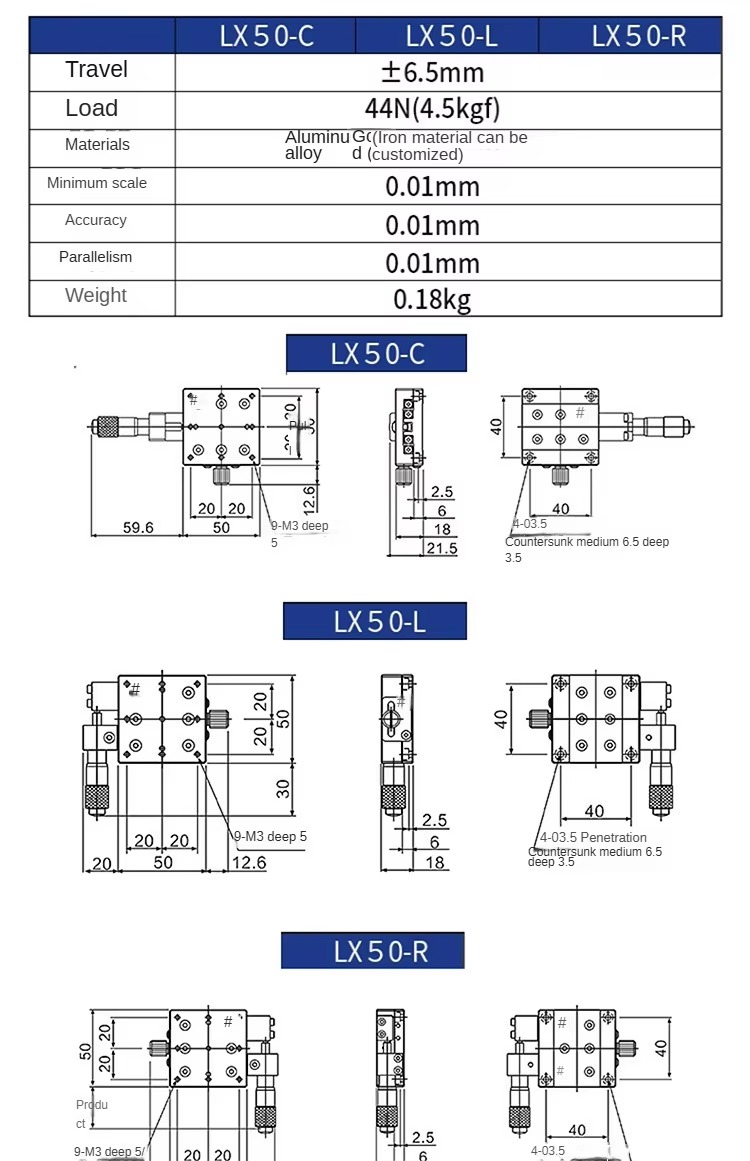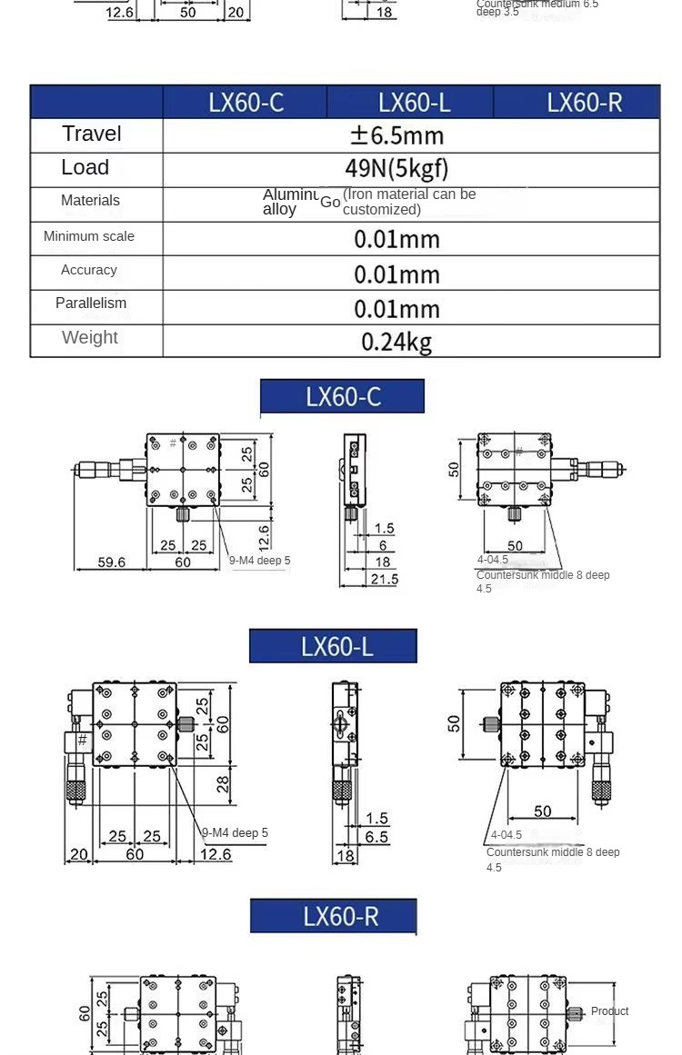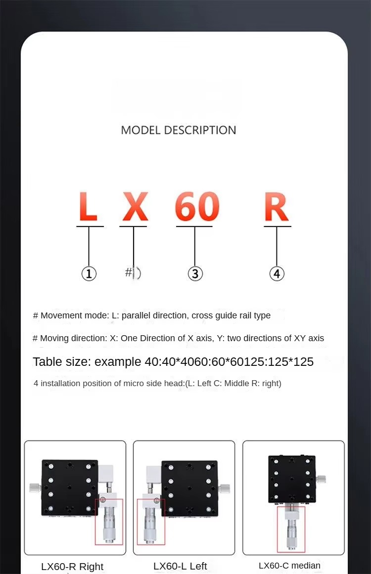 Mô tả chi tiết: Bàn trượt tinh chỉnh LX25/30/40/50/60/70-C / L / R