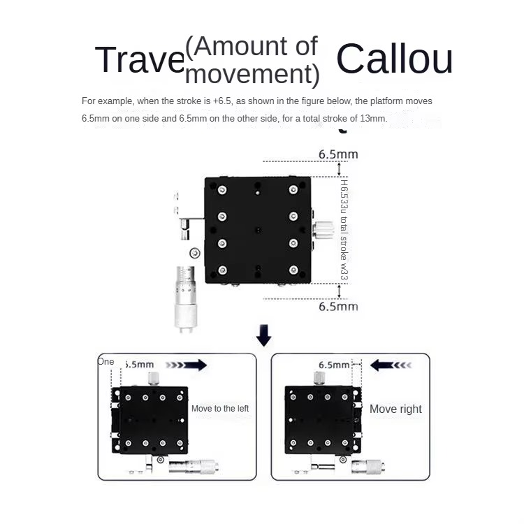 Khi sử dụng, người dùng xoay micrometer để đẩy hoặc kéo tấm bàn trượt. Vì micrometer được đặt tại vị trí “C / L / R”, lực tác động vào bàn có thể hơi khác, nhưng lò xo (nếu có) sẽ đẩy ngược để giữ tiếp xúc và giảm khe hở (backlash).