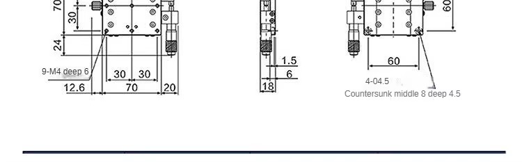 Mặt bàn trượt (Top Plate): một tấm trên có bề mặt gia công phẳng, thường có các lỗ ren (M-số) hoặc lỗ định vị để gắn các chi tiết quang học như gương, thấu kính, cảm biến, hoặc các linh kiện cơ khí nhỏ.