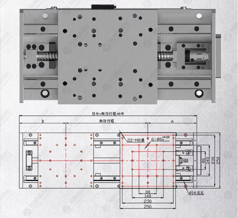 FG25 là mô-đun trượt tuyến tính điện chính xác cao (Precision Electric Linear Slide), sử dụng vít me bi kết hợp ray dẫn hướng tuyến tính, thiết kế chắc chắn, khả năng chịu tải lớn và độ ổn định cao. Sản phẩm phù hợp lắp ráp thành bàn trượt XY dạng chữ thập cho máy móc công nghiệp, máy CNC, thiết bị tự động hóa và cơ cấu định vị chính xác.