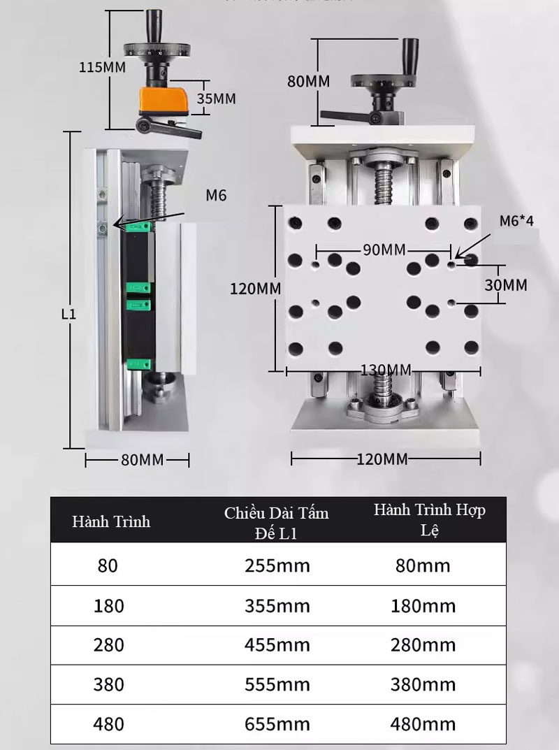 - Ray dẫn hướng: ray trượt tuyến tính hoặc rãnh dovetail