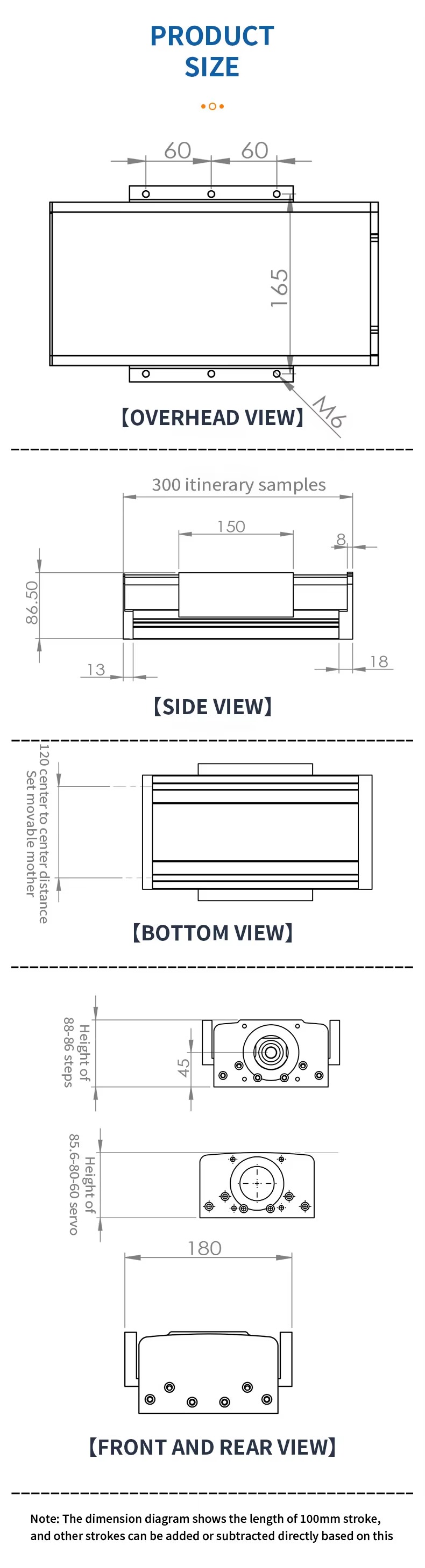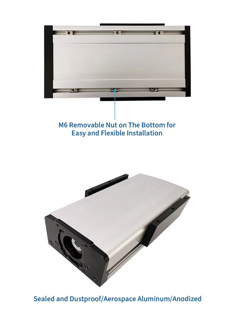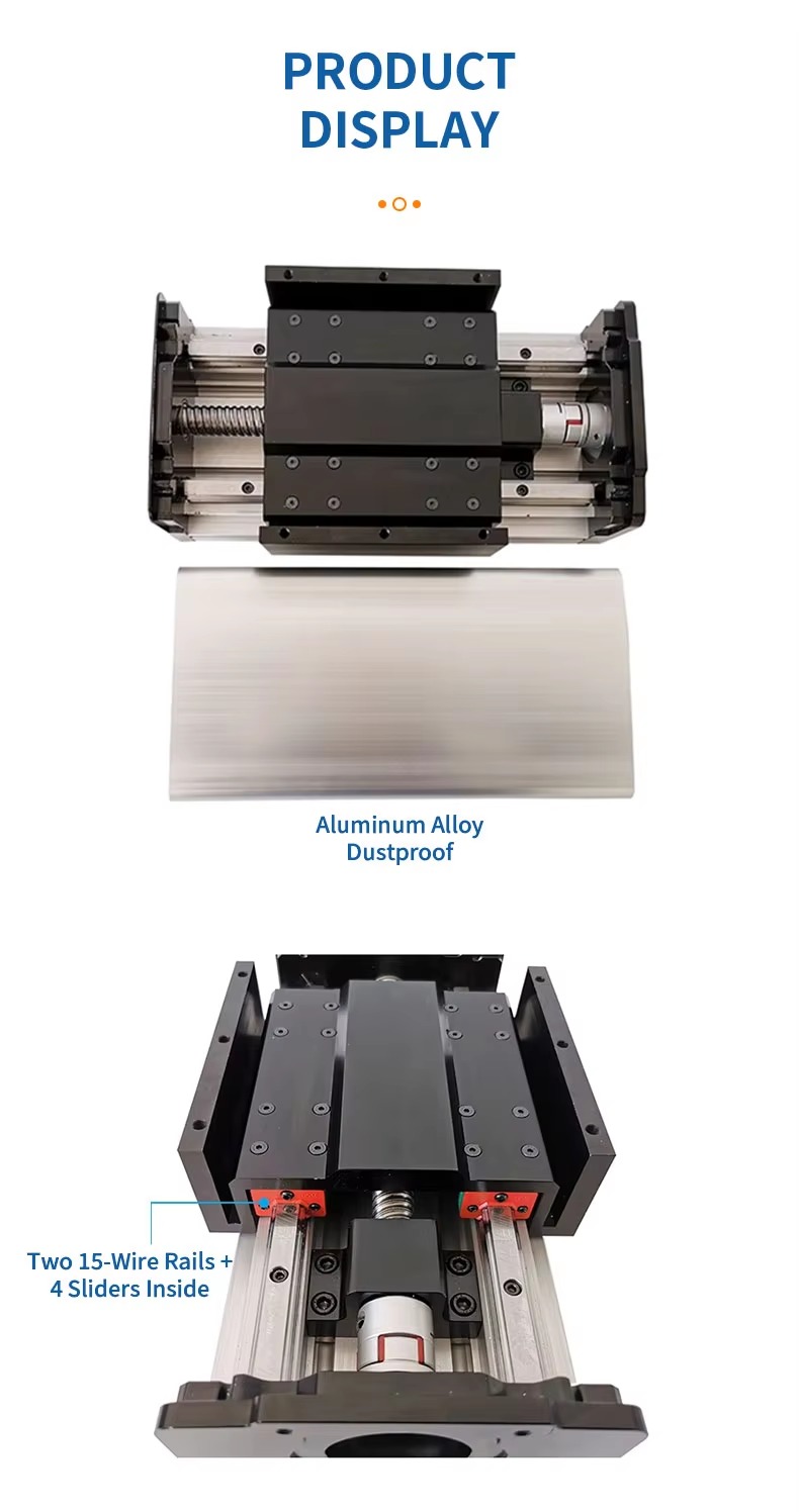 Chiều dài hành trình, bước vít me và tải trọng cụ thể có thể tùy chọn theo cấu hình.