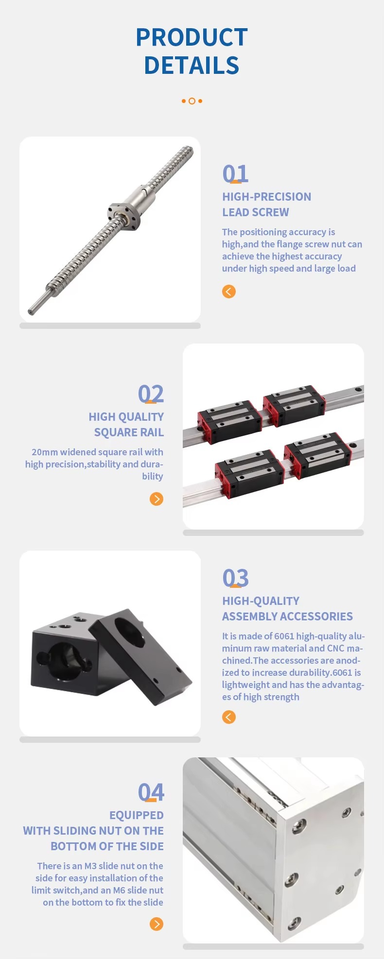 Sử dụng vít me bi chính xác cao, bước ren ổn định