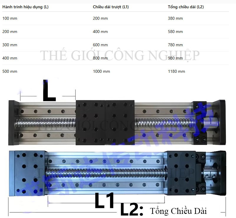 Hành trình hiệu dụng: 100mm / 200mm / 300mm / 400mm / 500mm (hoặc theo yêu cầu)
