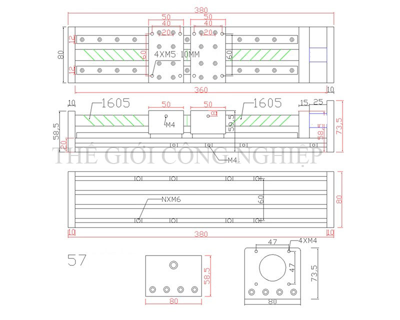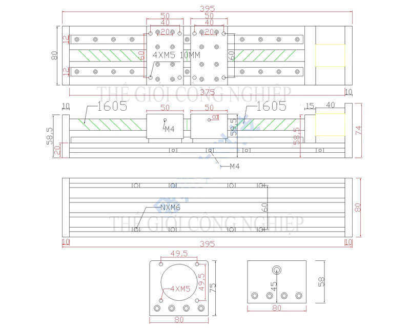 Động cơ tùy chọn: Servo, Stepper NEMA17/23, hoặc vận hành tay