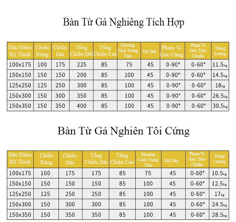 | 150 x 350 | 0–60° / 0–90° | Giá bằng nhau |