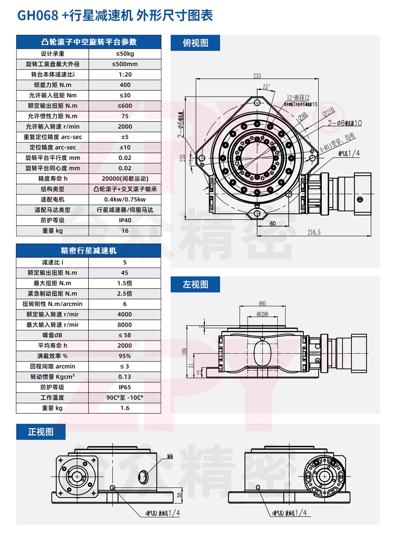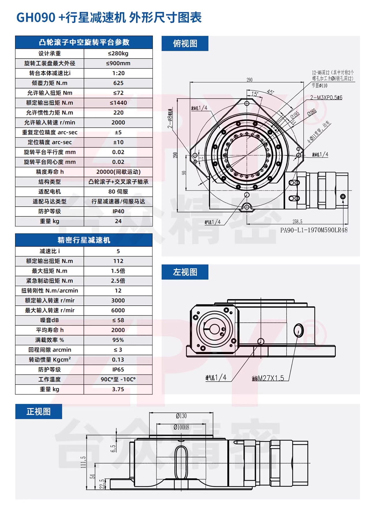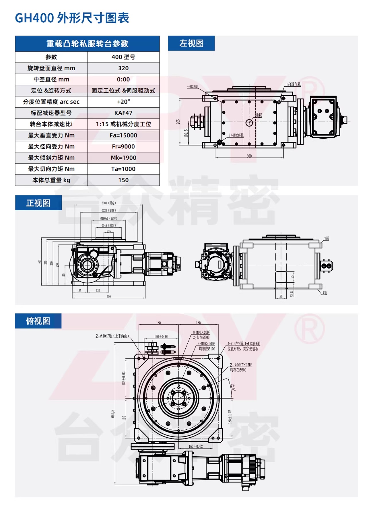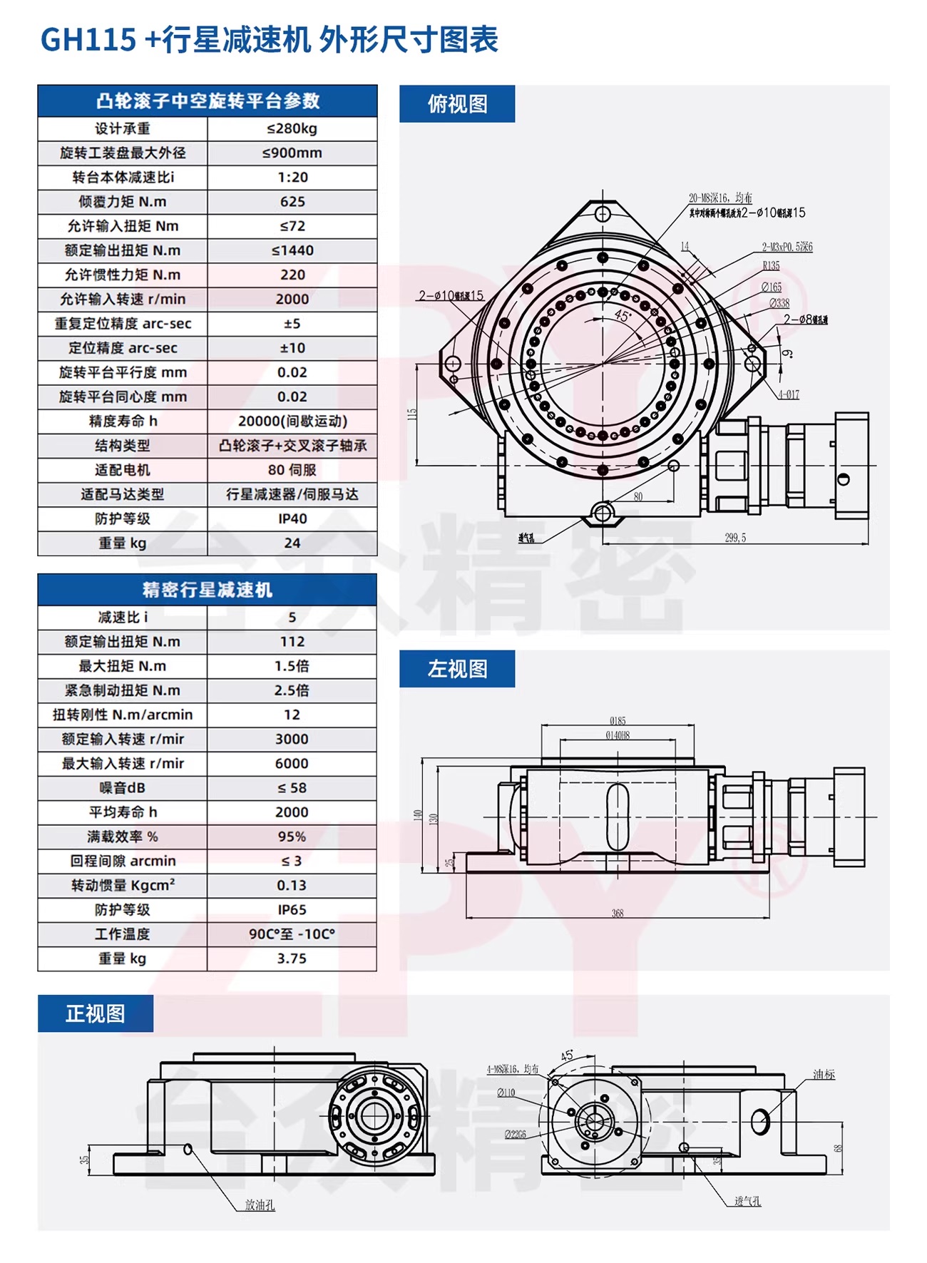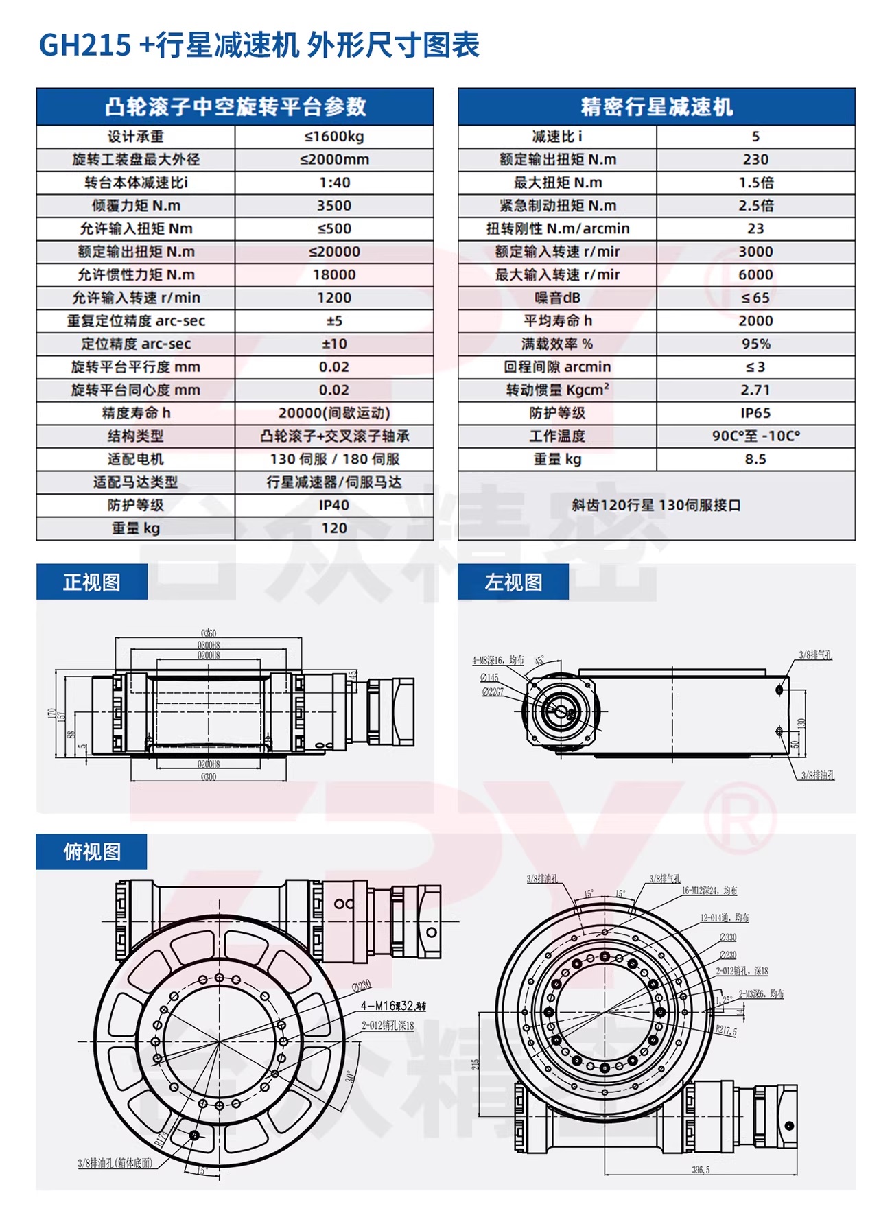 ✅ Thông số kỹ thuật bàn xoay rỗng trục tải nặng