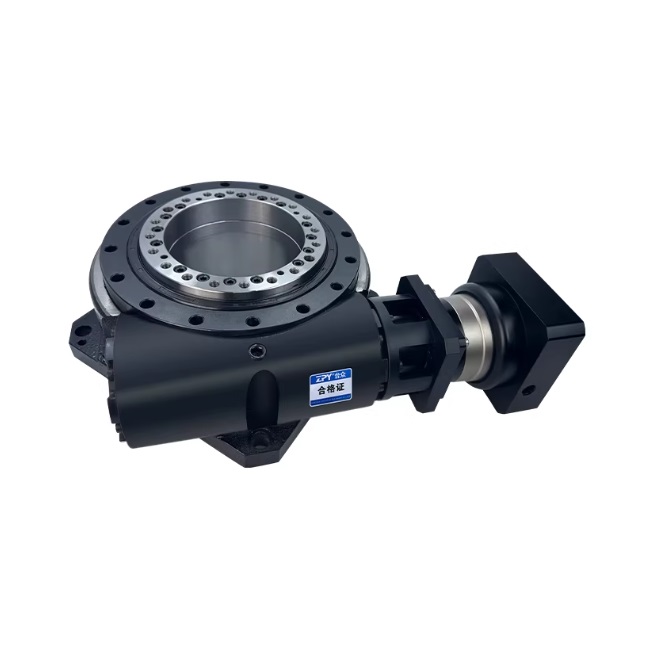 Đây là thiết bị truyền động quay có lỗ xuyên tâm (hollow shaft) cho phép đi dây điện/khí, lắp trục/ống xuyên qua tâm. Hệ thống giảm tốc tích hợp giúp bàn xoay đạt mô-men xoắn lớn – độ chính xác cao – vận hành ổn định, phù hợp ứng dụng công nghiệp nặng.