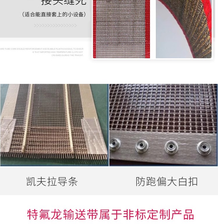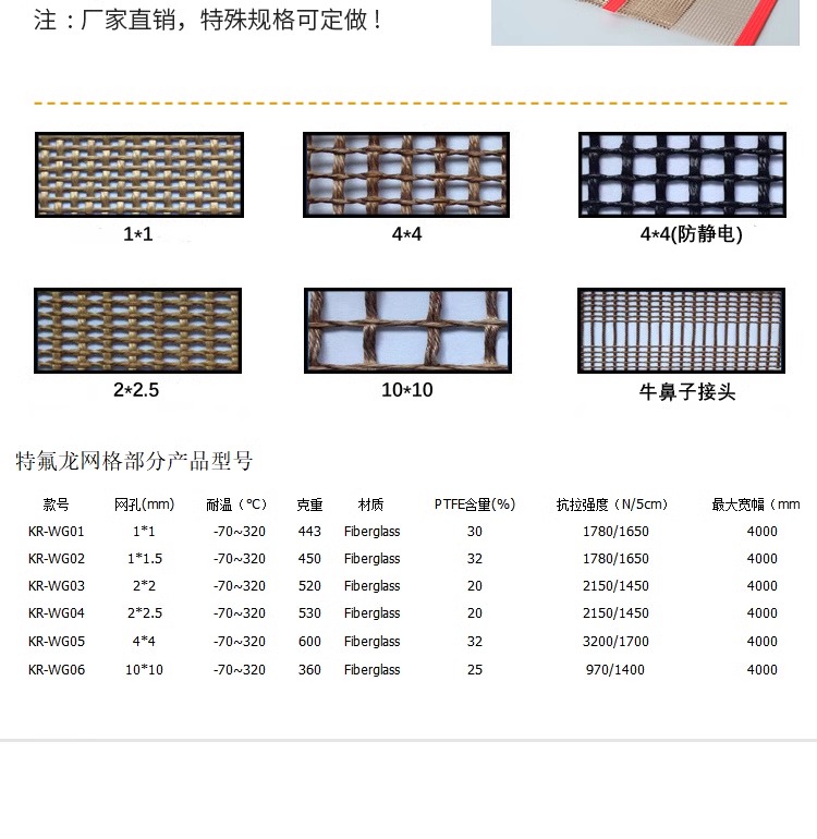 Sản phẩm băng tải lưới chịu nhiệt được làm bằng vật liệu polytetrafluoroethylene (PTFE) và bông thuỷ tinh với khả năng chịu nhiệt cao, tính mềm dẻo và có thể ứng dụng vào nhiều lĩnh vực khác nhau như ngành bao bì, dệt may và nhiều lĩnh vực khác và băng tải lưới chịu nhiệt (PTFE) có các tính năng sau:
