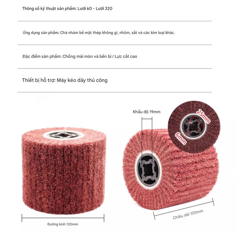 Ưu điểm nổi bật của bánh nhám rút sợi inox là tuổi thọ cao, ít bám bẩn, không gây cháy bề mặt, cho đường vân đẹp và đồng đều. Đây là giải pháp tối ưu trong gia công inox trang trí, thiết bị nhà bếp, lan can, cửa, cũng như các ngành cơ khí chính xác và hoàn thiện bề mặt kim loại.