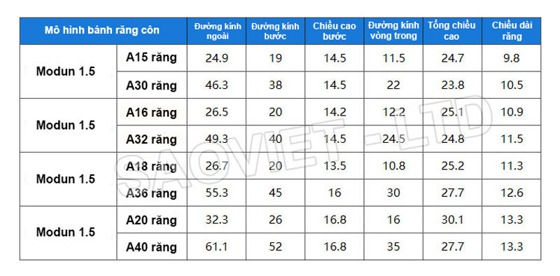 3. Môđun thể hiện kích thước của răng, môđun càng lớn thì răng càng lớn và khả năng chịu lực tương ứng.