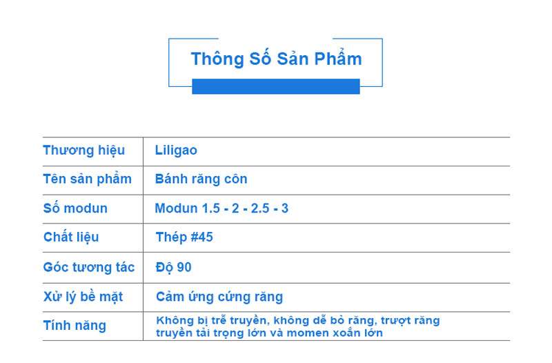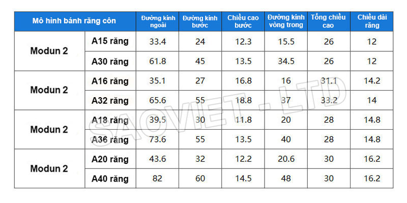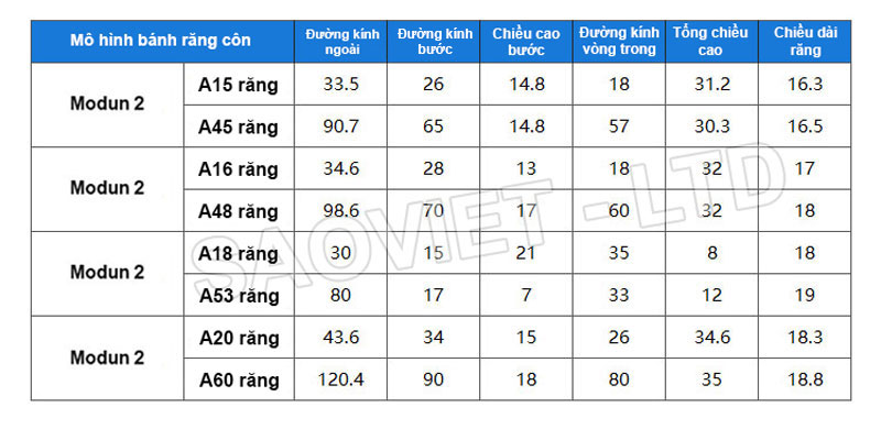 3. Môđun thể hiện kích thước của răng, môđun càng lớn thì răng càng lớn và khả năng chịu lực tương ứng.
