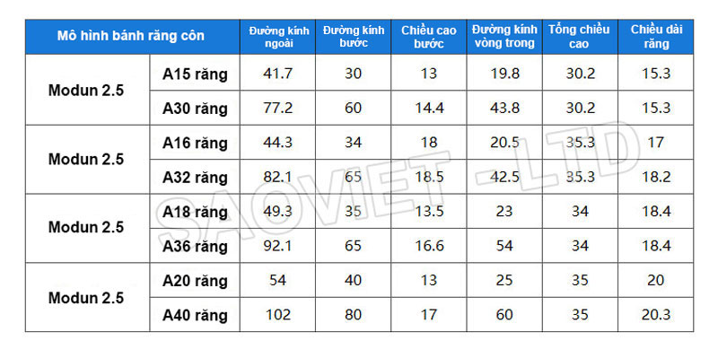 3. Môđun thể hiện kích thước của răng, môđun càng lớn thì răng càng lớn và khả năng chịu lực tương ứng.