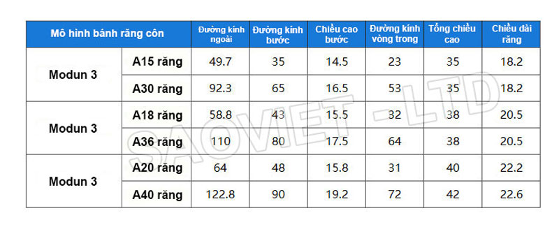 Modun 3 là kích thước phổ biến, thuận tiện cho việc lựa chọn và thiết kế cơ khí.