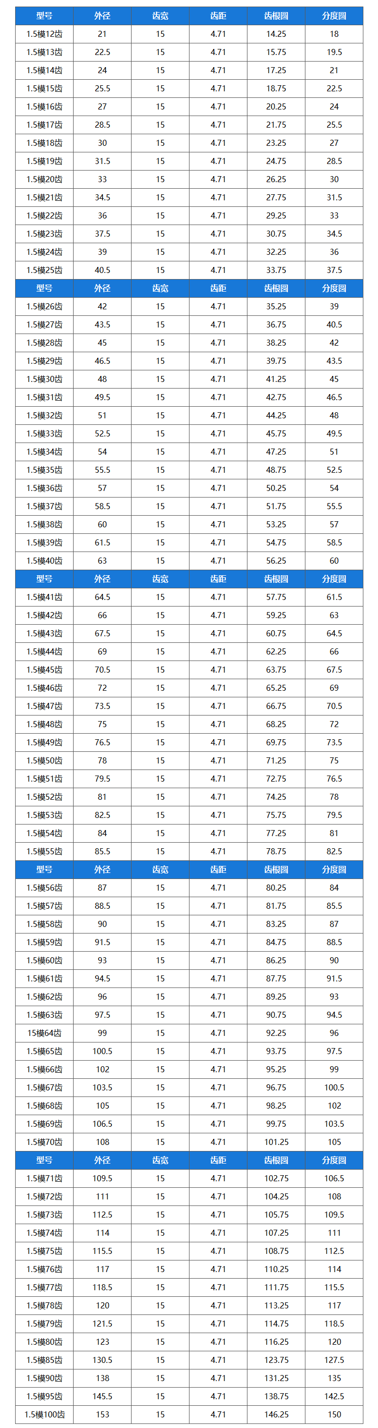 Modun 1,5: kích thước răng nhỏ, phù hợp cho các ứng dụng truyền động có tải nhẹ đến trung bình, đòi hỏi độ chính xác cao.