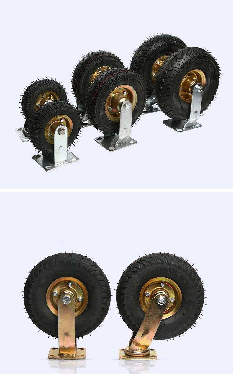Lốp cao su bơm hơi (pneumatic tire): Là lớp ngoài cùng, được làm từ cao su thiên nhiên hoặc cao su tổng hợp chất lượng cao, có gai hoặc mặt trơn tùy ứng dụng. Lốp được bơm hơi tương tự như bánh xe ô tô, giúp hấp thụ rung chấn và di chuyển êm ái.