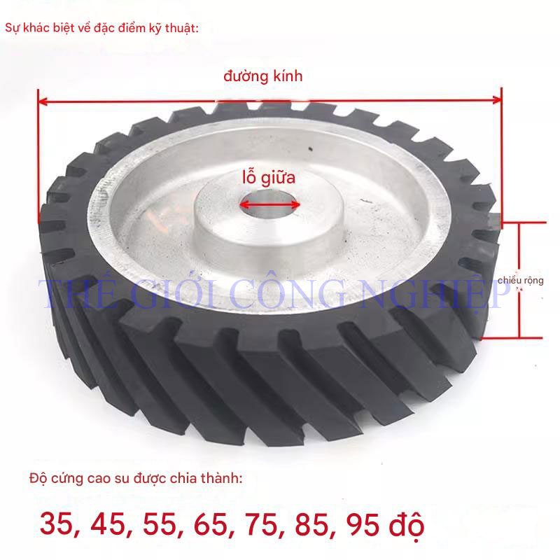 - Chất liệu: Cao su có khả năng chống mài mòn, giảm rung và giảm tiếng ồn hiệu quả. Lõi nhôm không bị gỉ, chống ăn mòn và chịu được áp lực lớn.