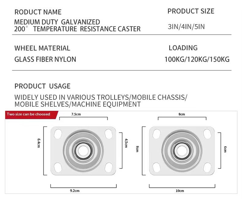 Mô tả chi tiết — Bánh xe chịu nhiệt 180°C 3" / 4" / 5"