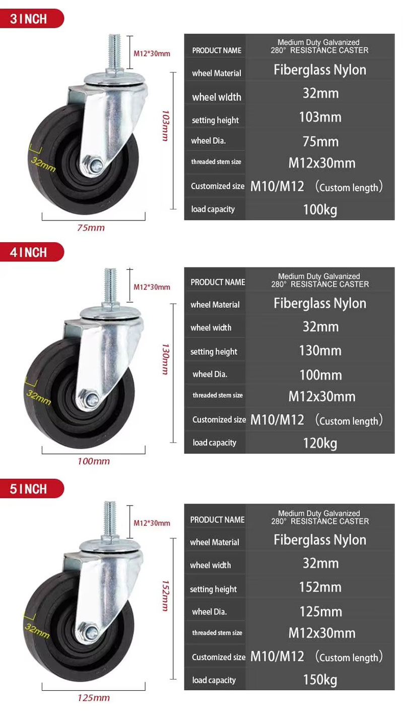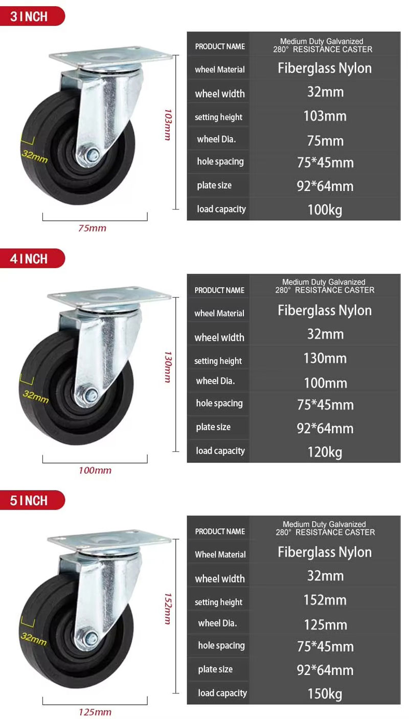 Loại: Bánh xe xoay nylon sợi thủy tinh màu đen