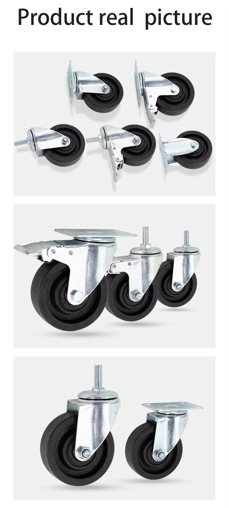 Càng xoay có khóa, càng cố định hoặc càng xoay tiêu chuẩn.