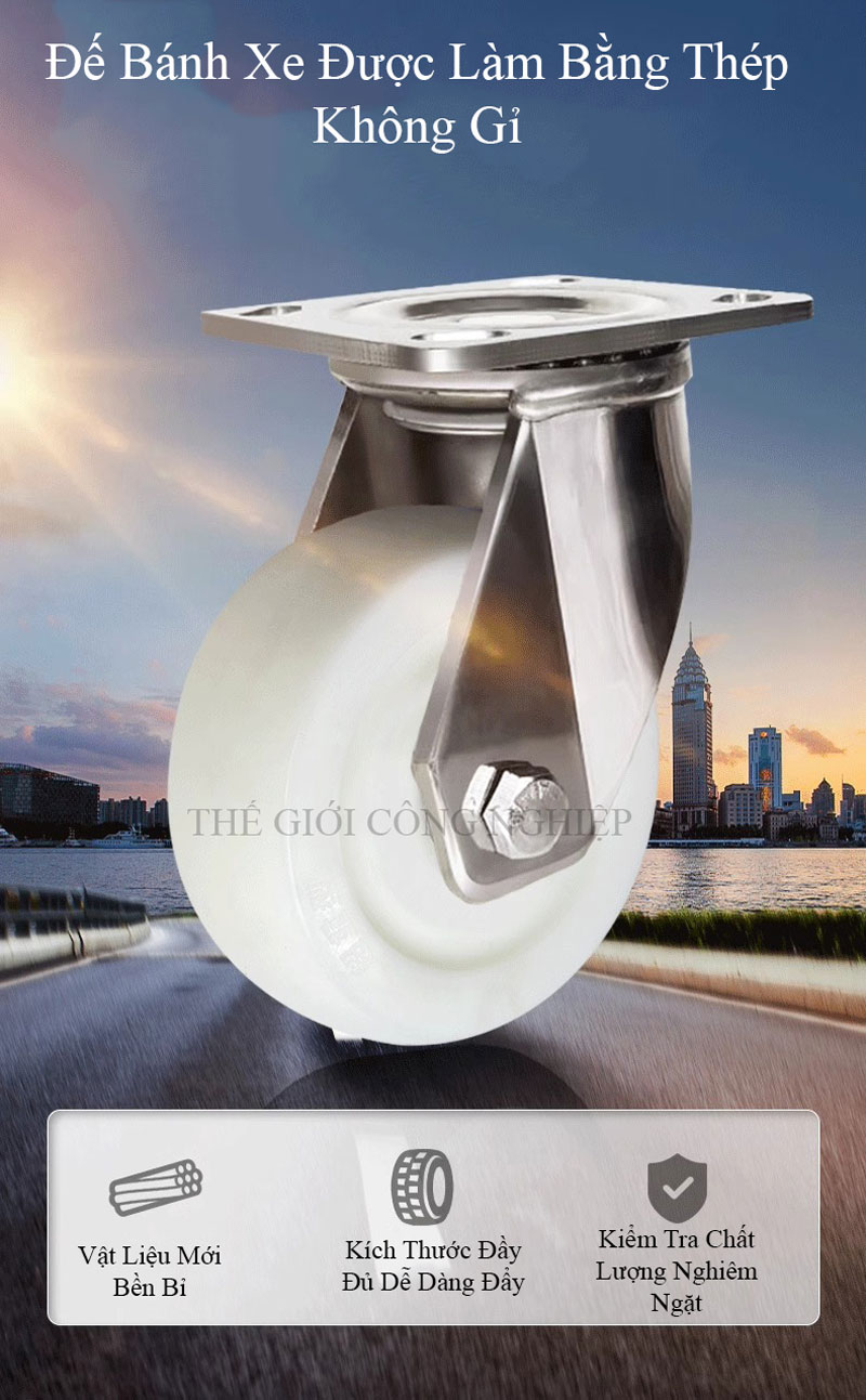 Bánh xe đẩy nhựa PA càng inox chịu tải cao là lựa chọn hoàn hảo cho các hệ thống xe đẩy hàng hóa trong môi trường khắc nghiệt, đảm bảo độ bền cao, vận hành ổn định và tuổi thọ lâu dài.