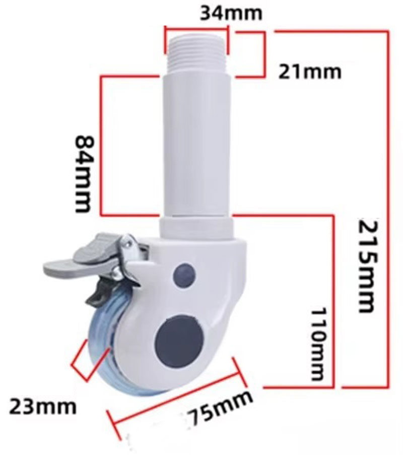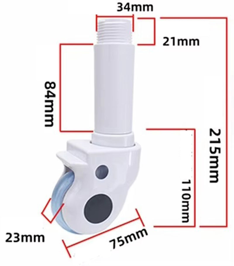 Thiết kế màu trắng tinh tế, sạch sẽ theo tiêu chuẩn ngành y, dễ lau chùi và giữ vệ sinh. Bánh xe y tế 3 inch ABS trắng là lựa chọn lý tưởng cho các thiết bị y tế cần độ ổn định, độ bền cao cùng khả năng vận hành êm mượt trong mọi điều kiện sử dụng.