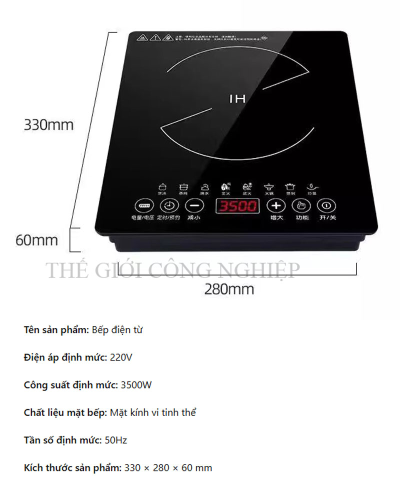 Bếp điện từ được trang bị tính năng an toàn như tự động ngắt khi quá nhiệt, bảo vệ quá áp và chống tràn, mang lại sự yên tâm trong quá trình sử dụng. Thiết kế nhỏ gọn với kích thước 330 x 280 x 60 mm, bếp dễ dàng bố trí trong nhiều không gian bếp, từ gia đình đến bếp công nghiệp.