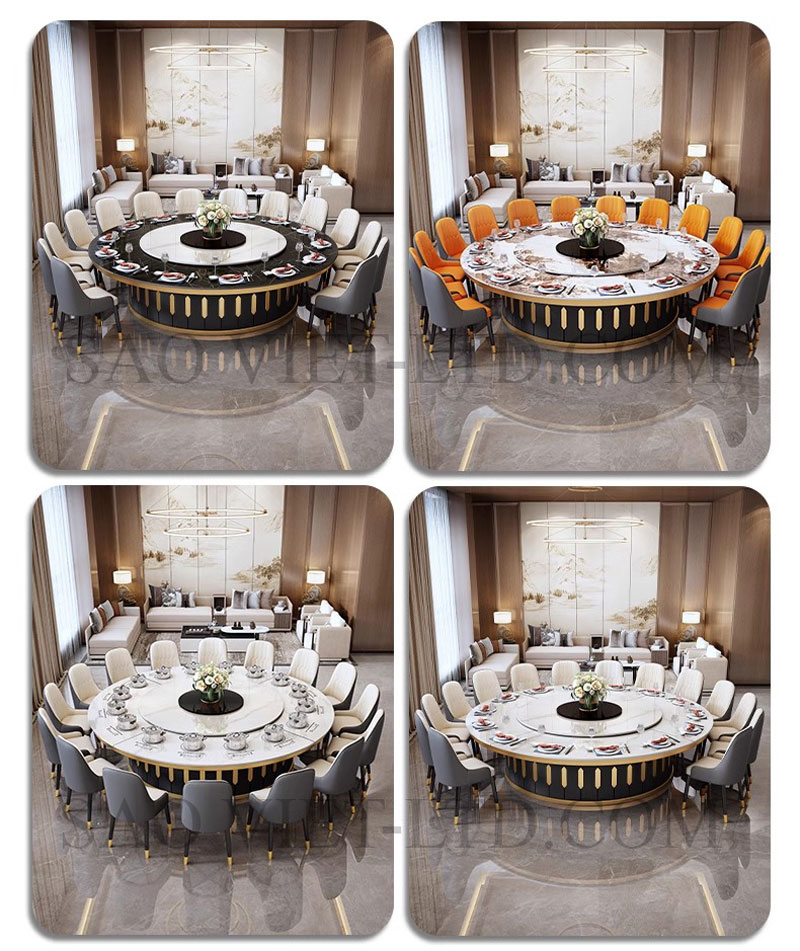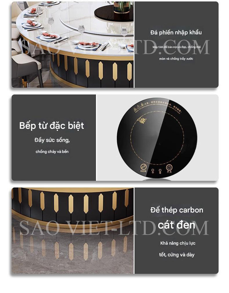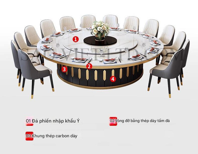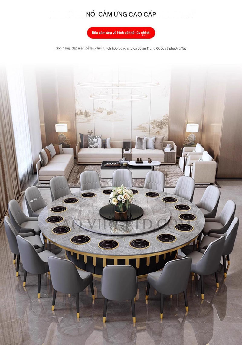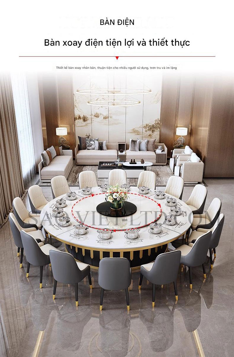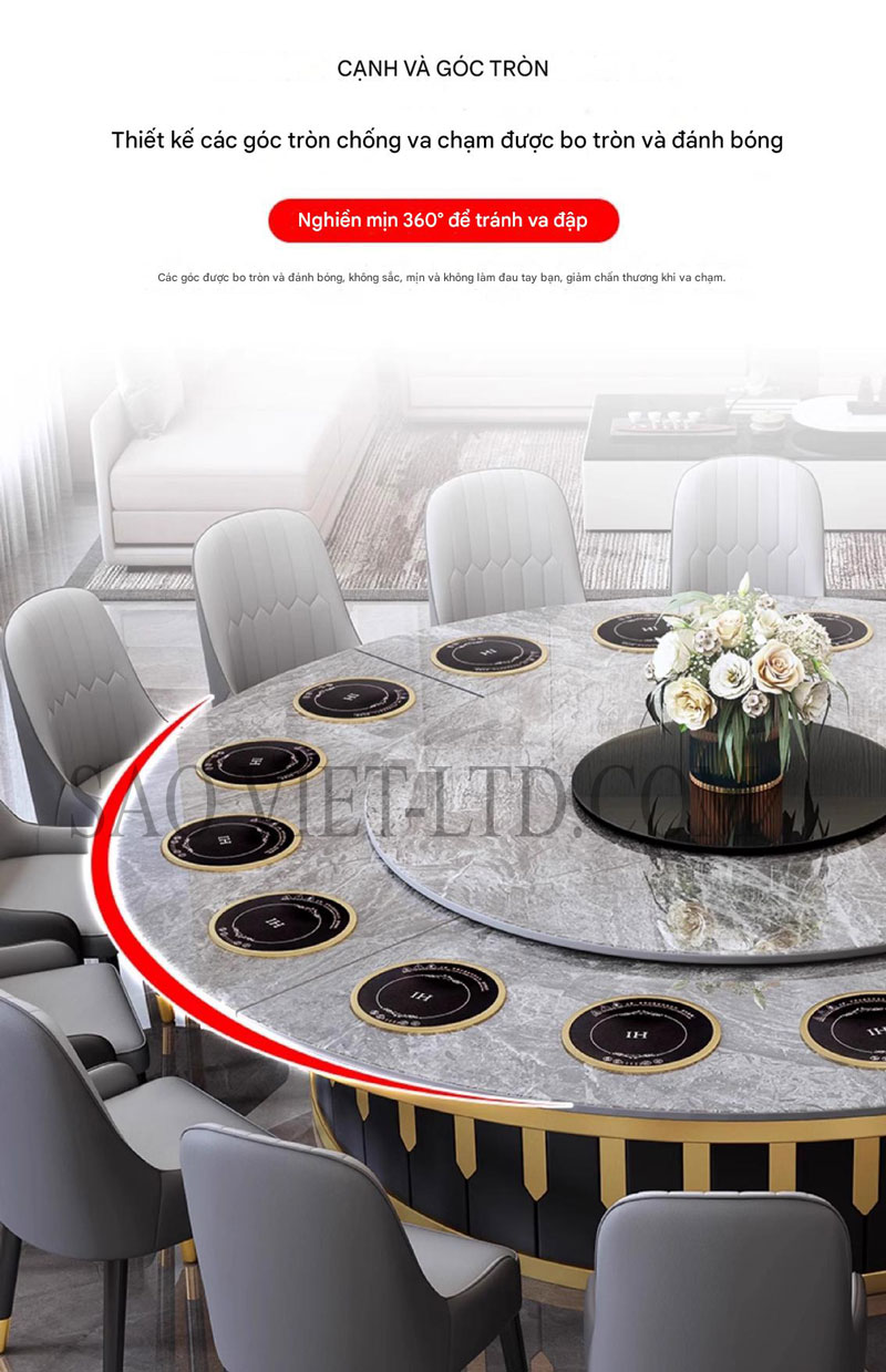 Sự kết hợp giữa mặt đá tự nhiên và mâm xoay điện hiện đại tạo nên vẻ đẹp sang trọng, tinh tế, phù hợp với không gian cao cấp. -