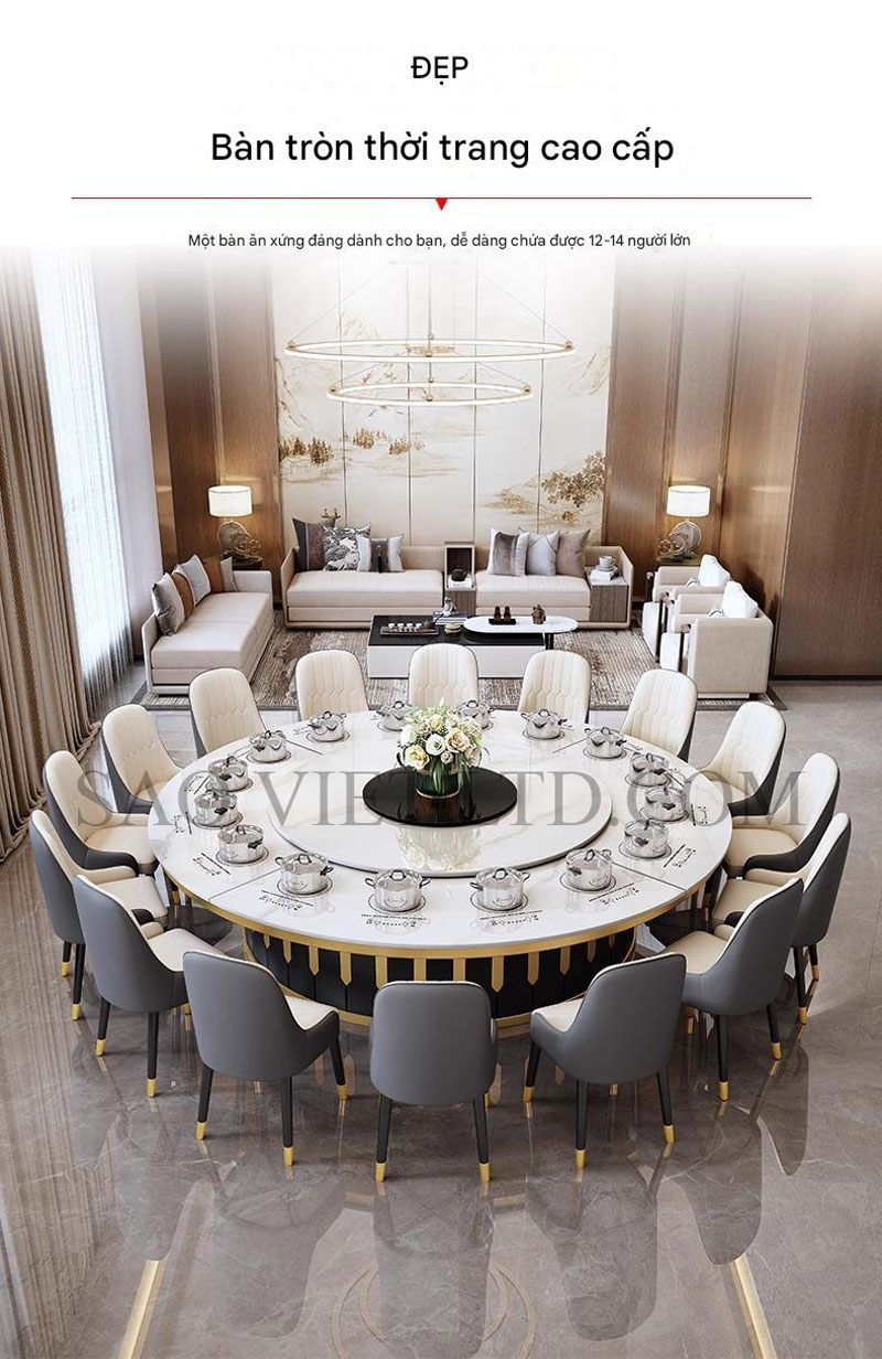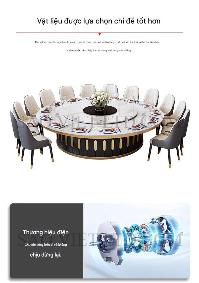 Bộ bàn ăn mặt đá gắn mâm xoay điện tự động mã BA11 là sản phẩm cao cấp, kết hợp giữa sự sang trọng của mặt đá tự nhiên và tính năng hiện đại của mâm xoay điện. Thiết kế tinh tế này phù hợp với không gian nhà hàng, khách sạn, hoặc phòng ăn gia đình lớn, mang lại trải nghiệm tiện nghi và đẳng cấp.