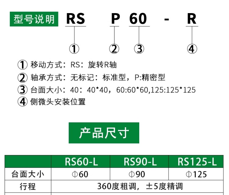 Mô tả chi tiết: Bộ Bàn Tinh Chỉnh Quang Học Trục R – Kiểu RS / RSP