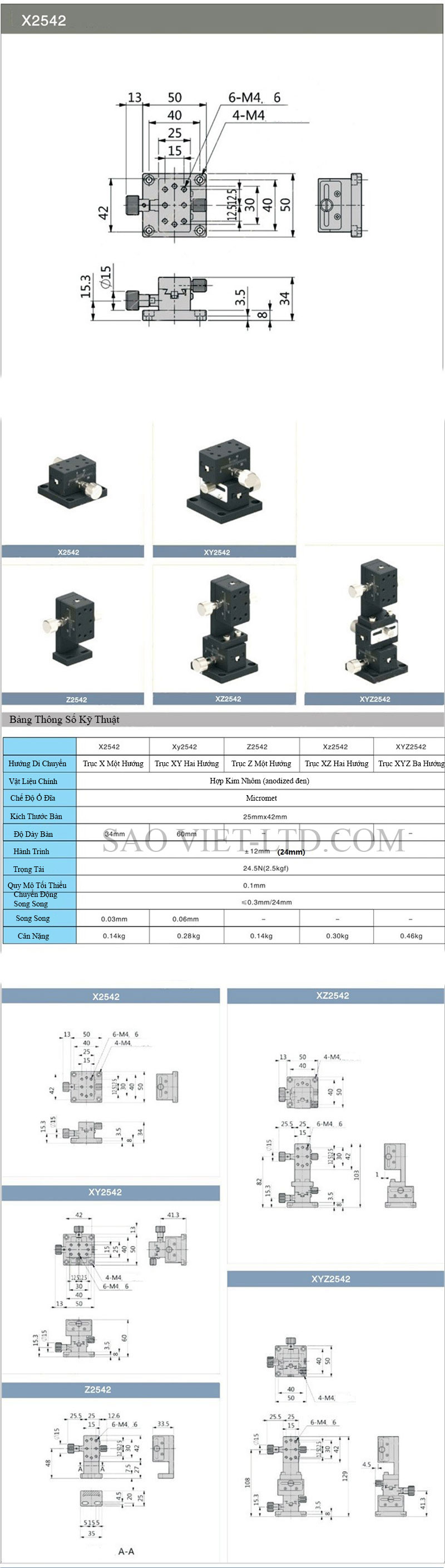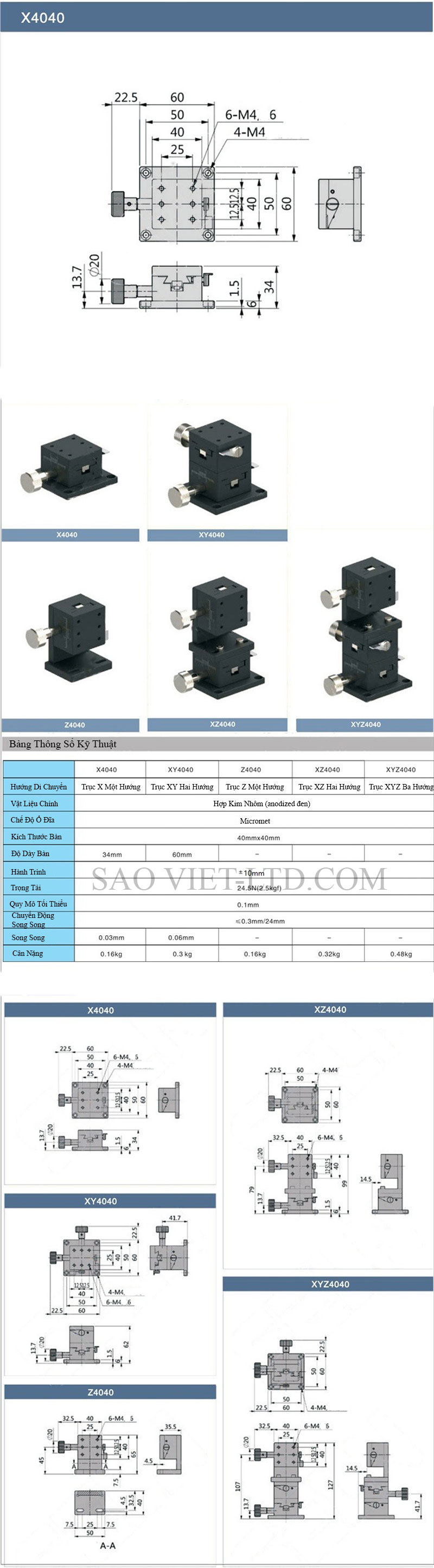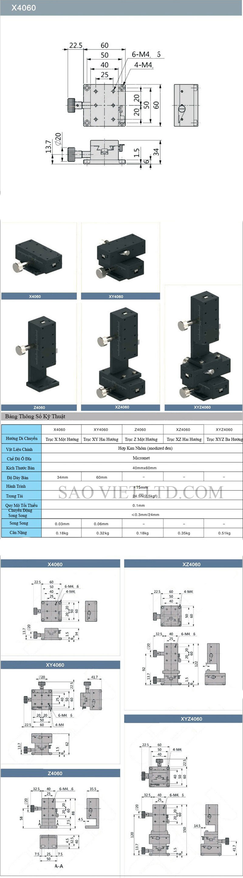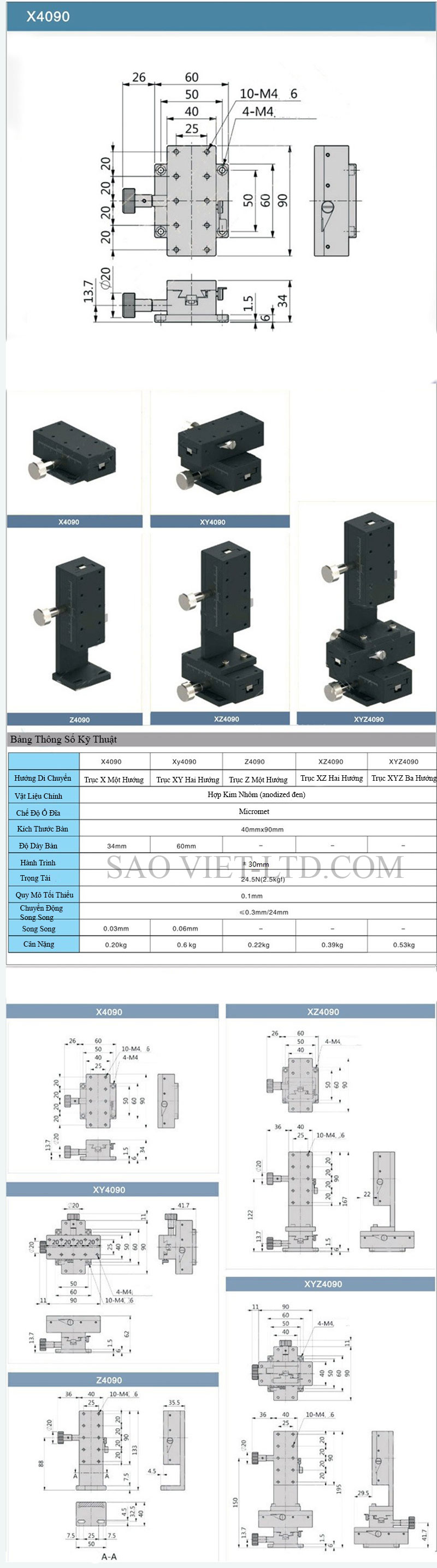 Mô tả chi tiết Bộ Bàn Tinh Chỉnh Quang Học Trục X – Kiểu LW
