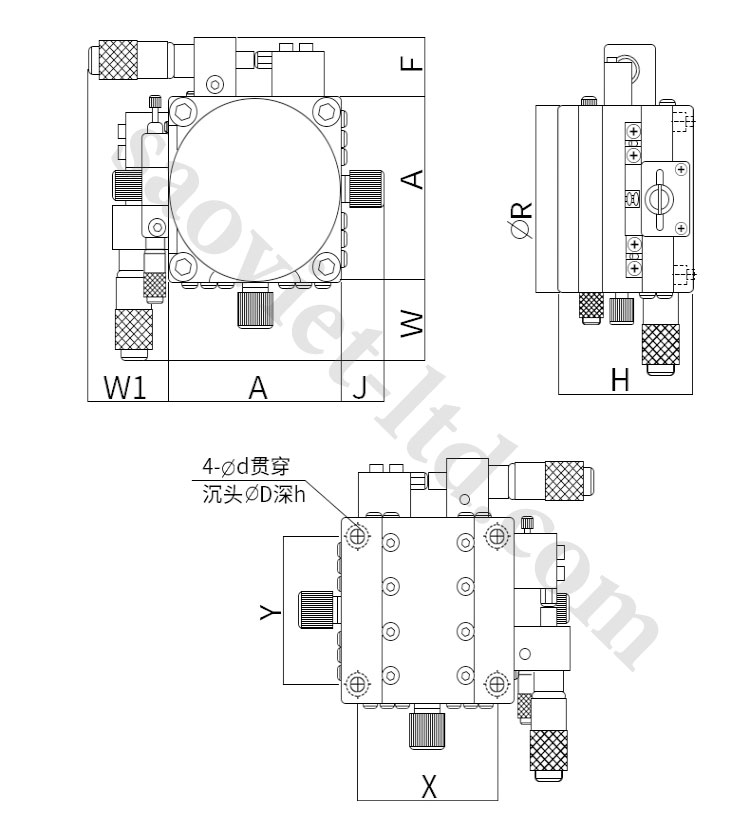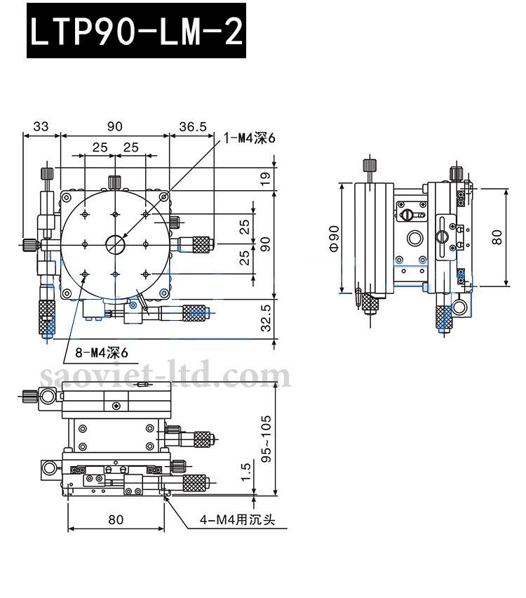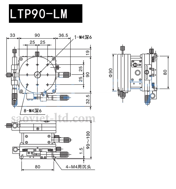 Mô tả chi tiết: Bộ Bàn Tinh Chỉnh Quang Học Xoay Bốn Trục XYZR Kiểu LTP