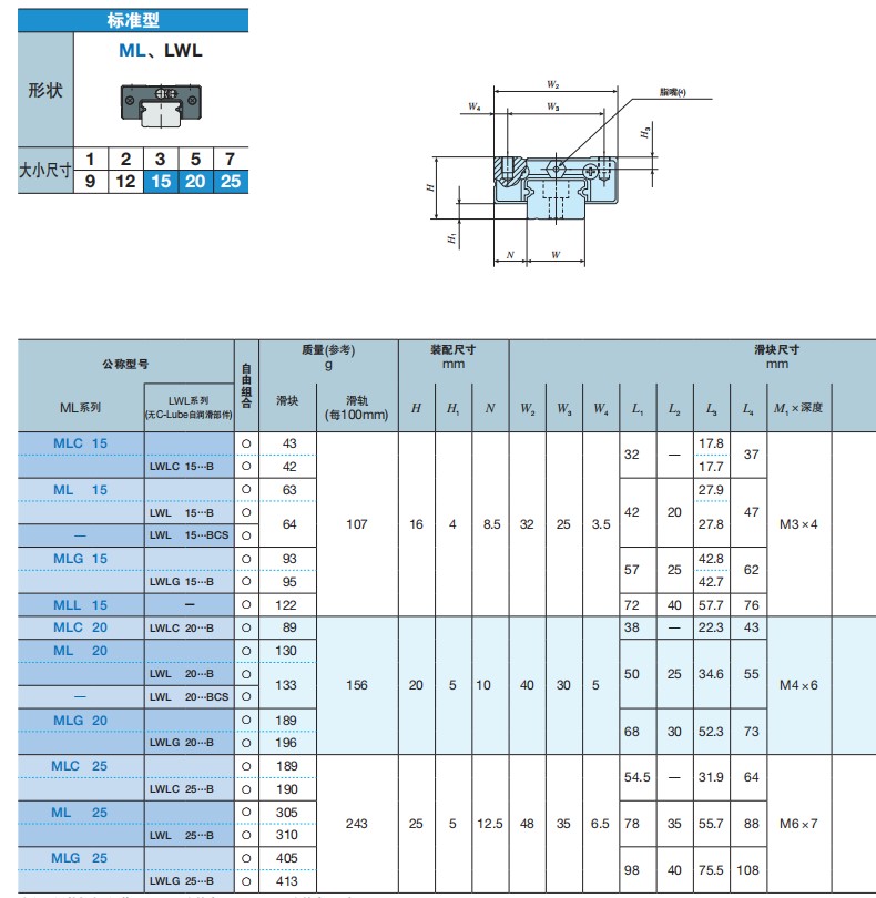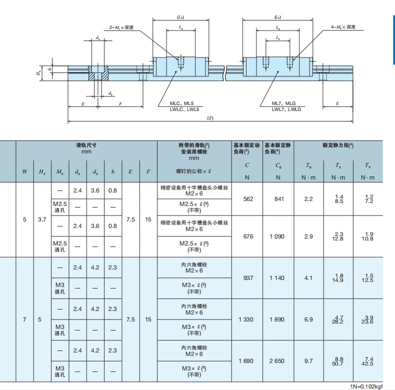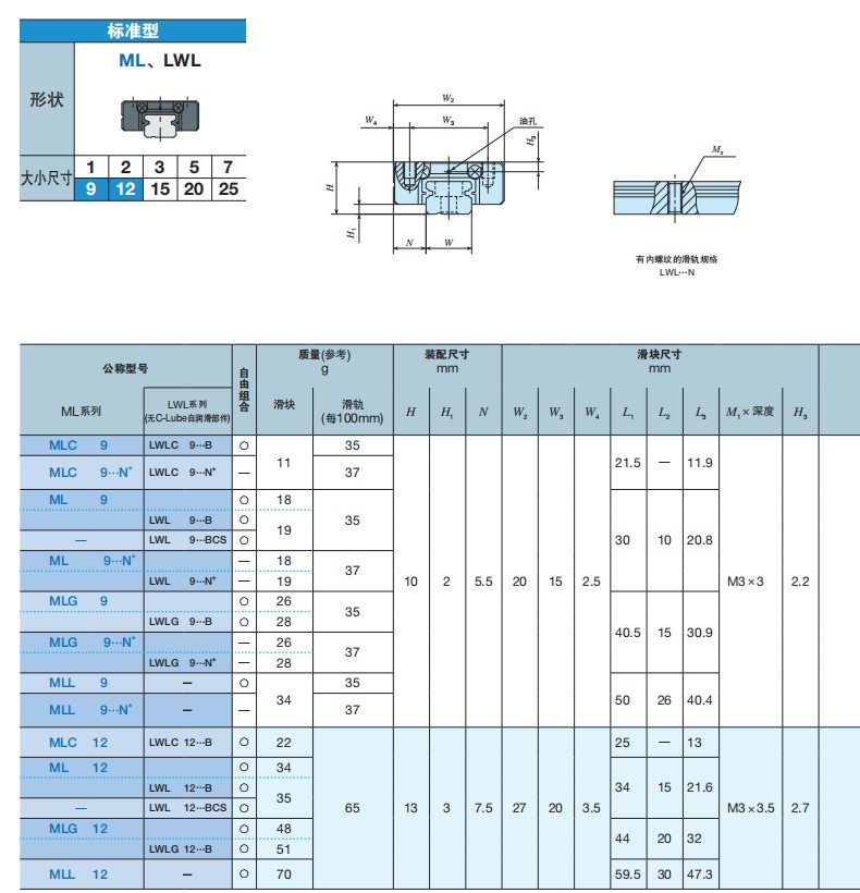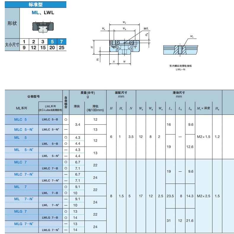 LWLC → Dòng ray mini, tải nhẹ