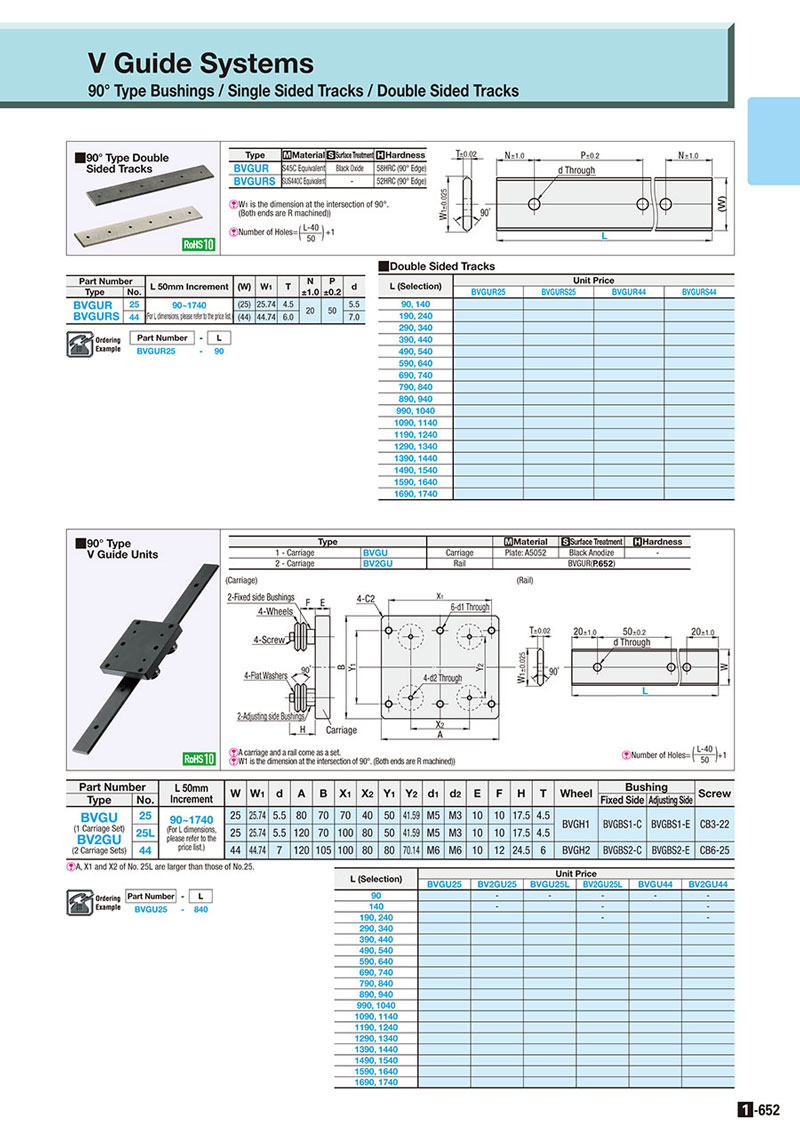 Thanh ray V 90°: Làm từ thép hợp kim hoặc inox, được nhiệt luyện và mài nhẵn, có độ cứng và khả năng chống mài mòn cao.
