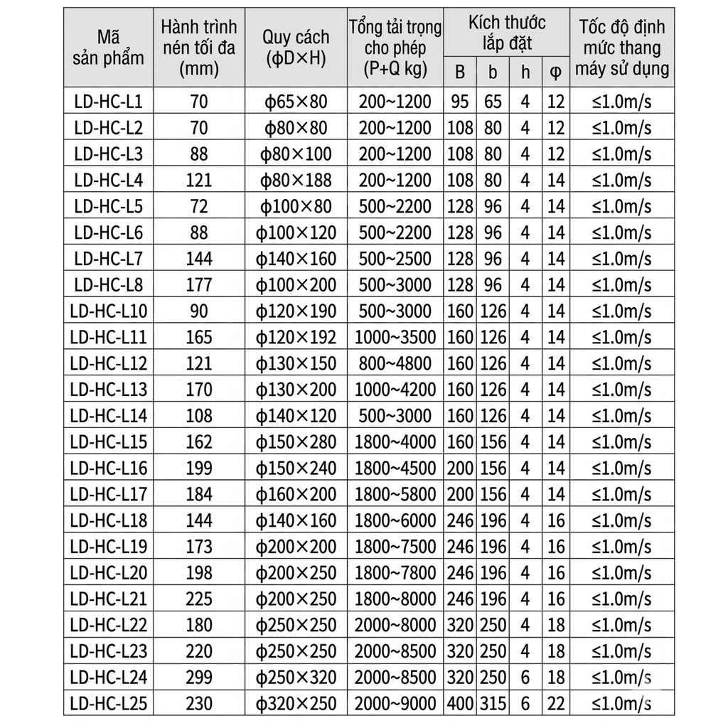 - Thiết kế đa dạng, linh hoạt: Nhiều model khác nhau (LD-HC-L3 đến L19) giúp dễ dàng lựa chọn theo tải trọng và đặc điểm kỹ thuật của từng loại thang máy.